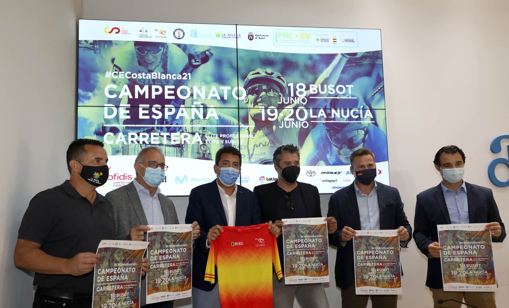 El Campeonato de España de Ciclismo en Carretera Élite-Sub 23 recala este fin de semana en la provincia. La Diputación de Alicante colabora en la organización y difusión de este importante evento que consta de pruebas contrarreloj individuales, con salida y meta en Busot, y carreras en línea que arrancarán y concluirán en La Nucía.