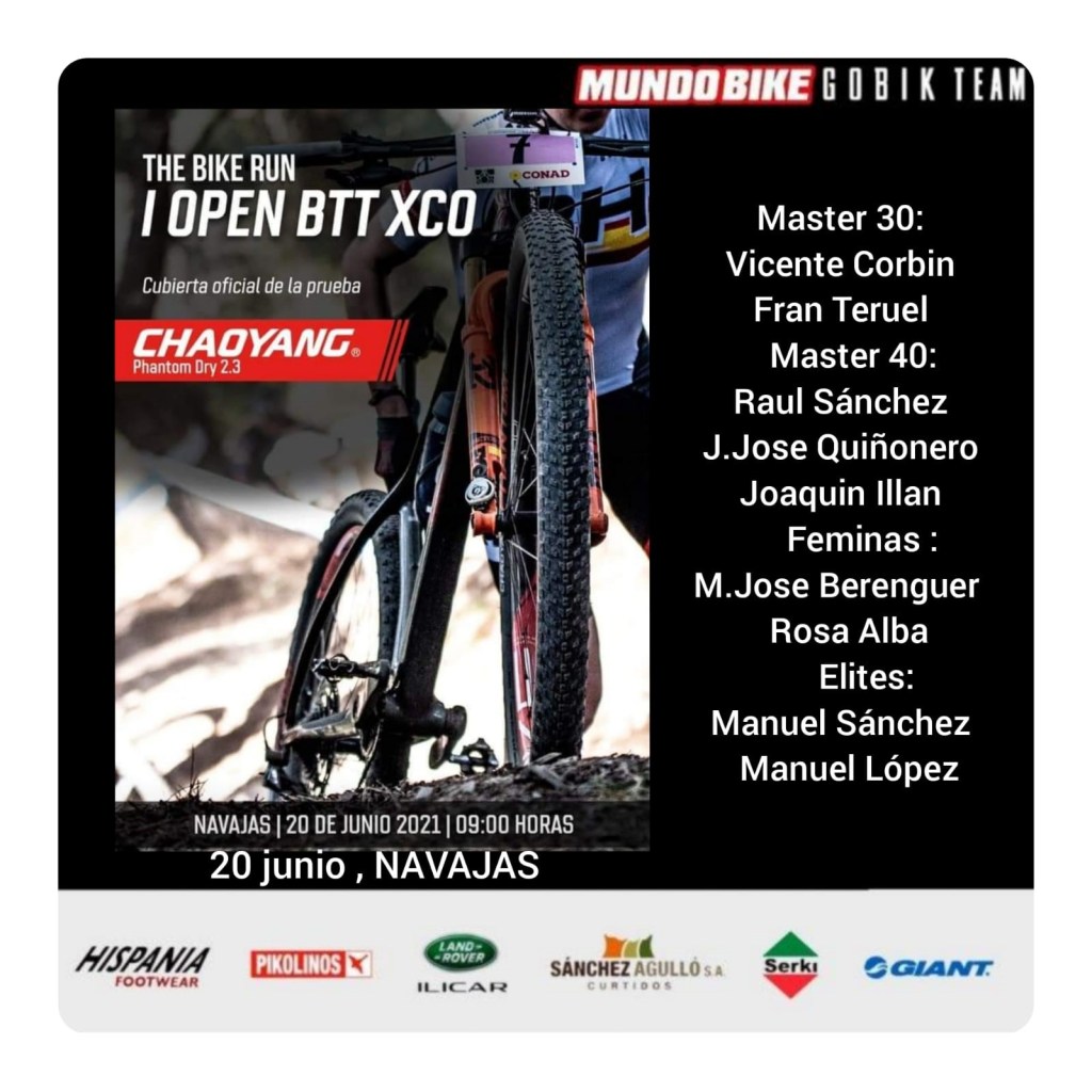 El Open BTT XCO de la Comunitat finaliza el domingo con la disputa, a partir de las nueve de la mañana, del Open CV XCO Navajas-Gran Premimo Nutrinovx que organiza The Bike Run CC. En principio estaba previsto una cuarta prueba en Agost para el día 27 de junio, pero ha quedado suspendida. Tras las citas puntuables de Villar del Arzobispo y Benissa, los líderes provisionales del Open de BTT XC de la Comunitat Valenciana en las respectivas categorías son Manuel López (CC Mundo Bike), en elite; Elena Lloret (X-Sauce), en féminas open; Marcos Oriente (Fundación Jose Sabater), en sub 23; Vicent Zaragoza (La Vila Joiosa) y Vania Rico (Kross Team España), en juniors; Adrián Valle (Juan Giner – ULB – Primafrio) y Sandra Jover (Fundación José Sabater), en cadetes; Manuel José Julve (UC Benicarló), en M30; Daniel Cepa (Xabia’s Bike – Faster Wear), en M40; Antonio Iborra (CC Polop), en M50; y Antonio Llinares (La Vila Joiosa),en M60.