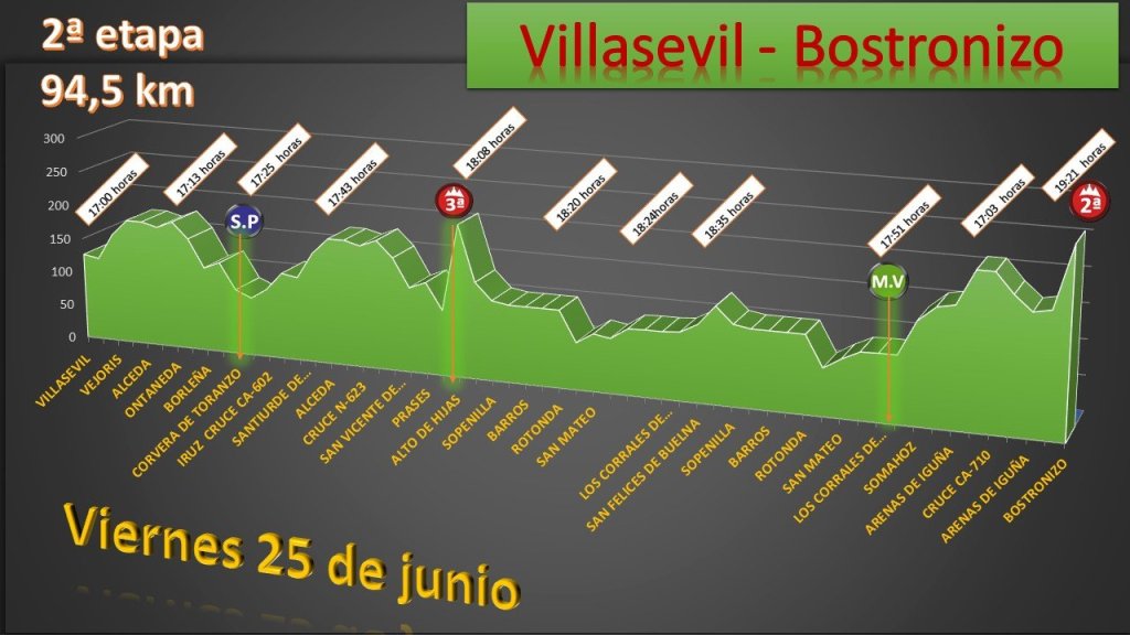 El viernes se disputa la segunda etapa, 93,5 kilómetros, entre Villasevil y Bostronizo, con final en un alto de segunda categoría.