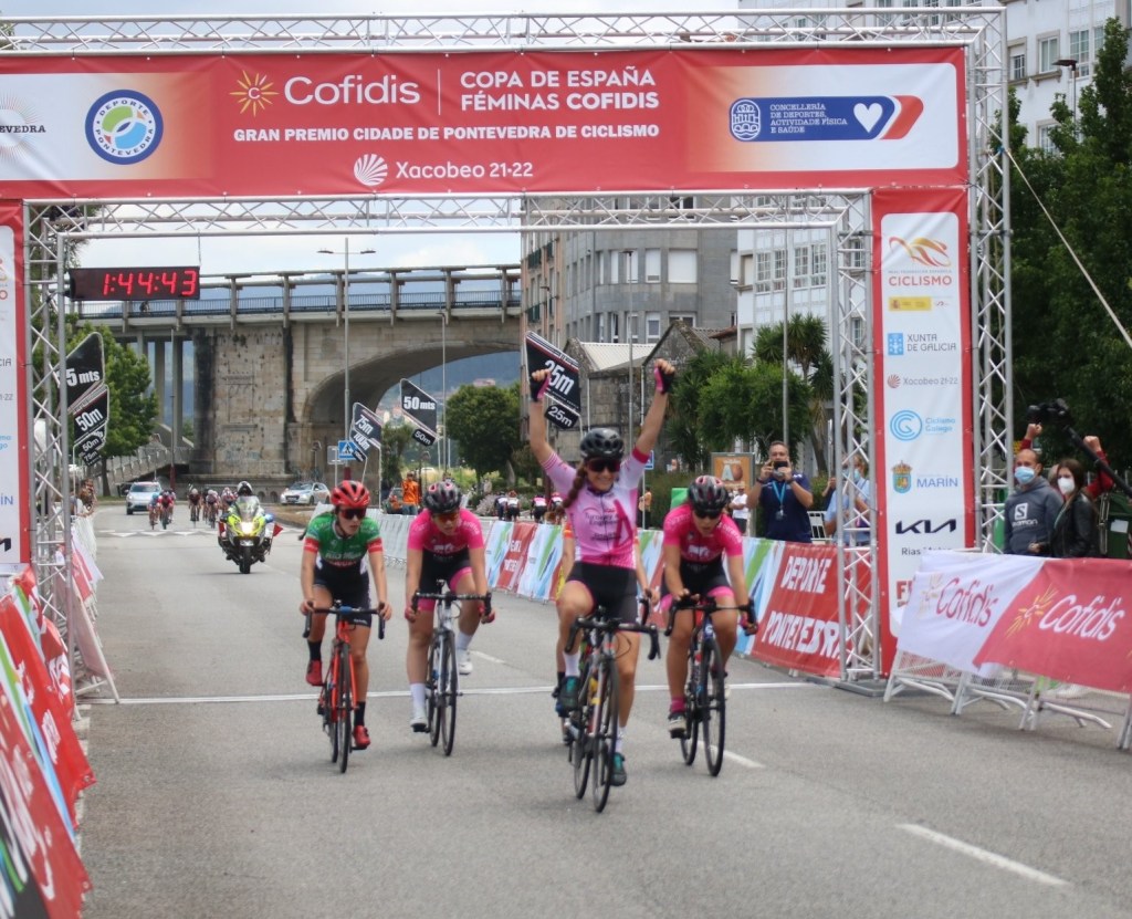 Susana Pérez (Río Miera) ha ganado el Gran Premio Cidade de Pontevedra, quinta puntuable de la Copa de España Féminas, de 99 kilómetros y con el doble paso por el Alto de A Porteña, 1,3 km al 6,4%, como principal dificultad. Pérez ha sido más veloz en el esprint que Idoia Eraso y Claire Steels. En la categoría cadete primer podio en la Copa de España para Laura Guardeño (Cronobike Granja Rinya), que ha terminado tercera, por detrás de Laia Bosch y Nahia Arana. «Estoy muy contenta de mi estreno en el cajón. He tenido muy buenas sensaciones durante toda la carrera y sobre todo en el esprint. Noto que voy mejorando y que estoy en el buen camino», apuntaba una satisfecha corredora alicantina que confía en seguir progresando. Destacar la cuarta plaza de Raquel Pérez Atienza (AM Sonido). También ha competido Aida Rossato (Cronobike).