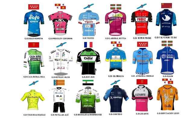 Kutxa, Grupo Eulen, Avimosa-Chozas, Eolo-Kometa, Bicicletas Rodríguez-Extremadura y Valverde-Terra Fecundis. Se les unirá en esta campaña el AVC-Aix en Provence francés.