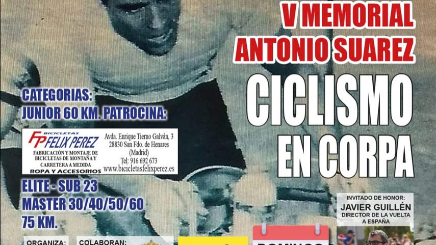 El equipo juvenil del CC San Vicente competirá el domingo en la V edición del Memorial Antonio Suárez. La prueba, reservada para las categorías junior, máster y elites-sub23, se desarrollará en el pueblo madrileño de Corpa. Los primeros en entrar en acción serán los juveniles, con un recorrido de 60 kilómetros, y con la subida puntuable de Corpa a mitad del recorrido. Salida fijada para las 9:00 horas desde la plaza Mayor de localidad y final entre las 10:38 y las 10:46 horas. El Guijarro correrá con toda su plantilla, incluidos los que participen el sábado en Don Benito.