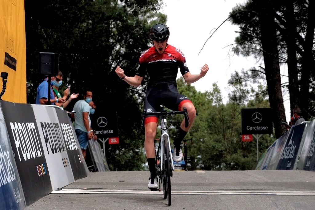 El de hoy ha sido el primer triunfo de Nacho Gálvez (Madrid, 18-04-2001) como ciclista. Llegó esta temporada al equipo sajeño tras proclamarse campeón de Europa de Duatlón y subcampeón del mundo de triatlón en la categoría júnior. «Es mi primera victoria en el ciclismo. Ya la busqué ayer, pero no pudo ser», reconocía el corredor madrileño. «Hoy hemos salido todo el equipo con mentalidad ganadora. En el primer puerto mis compañeros nos han colocado de forma perfecta tanto a mí como a Romaric. Forques ha hecho una selección muy grande. Tras ayudar a mi compañero me he ido una vez, pero me han pillado. A 15 de meta lo he vuelto a intentar y ya nadie me ha podido pillar», relataba un satisfecho Nacho Gálvez.