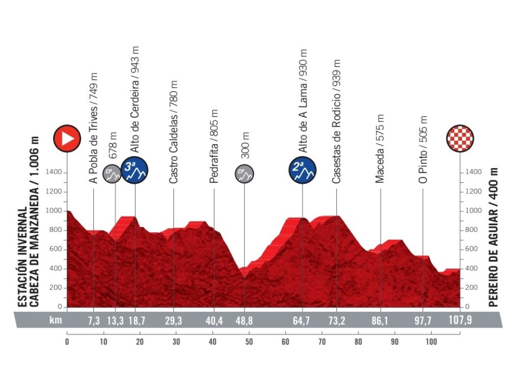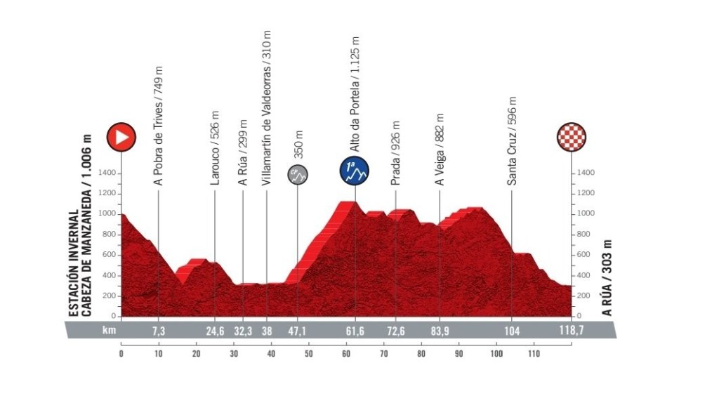 La CERATIZIT Challenge by La Vuelta 21 comenzará con una etapa que saldrá de la Estación Invernal Cabeza de Manzaneda y finalizará en la localidad de A Rúa. Un día íntegro en la provincia de Ourense, cuyo recorrido supera los 118 kilómetros y que incluye un paso por el Alto de Portela, de primera categoría.
