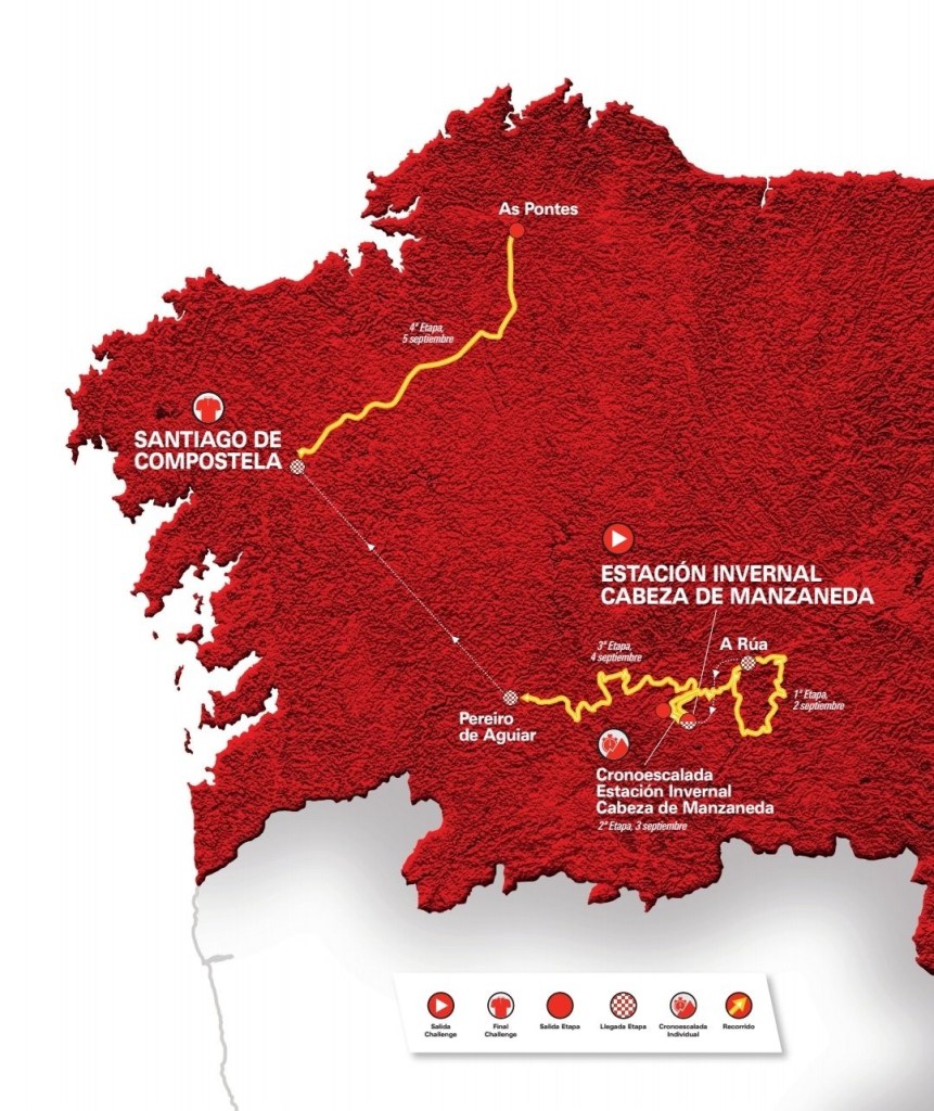 En total, cuatro etapas muy diferentes, entre las que se incluyen dos exigentes jornadas de media montaña, una cronoescalada de 7,3 kilómetros y una última etapa en llano, con previsible final al sprint en la capital gallega, Santiago de Compostela. Esta última etapa se disputará el 5 de septiembre, coincidiendo con el final de La Vuelta 21 en la Plaza del Obradoiro.