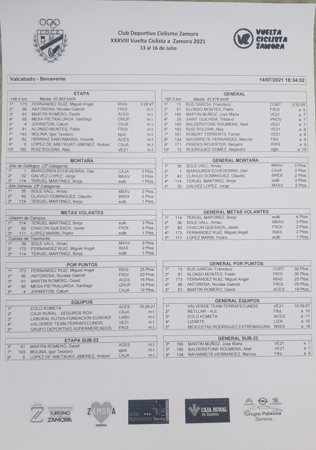 Miguel Ángel Fernández (Rías Baixas) ha sido el ganador al esprint de la segunda etapa de la Vuelta Ciclista a Zamora que ha unido Valcabado-Roales y Benavente, tras 150 kilómetros de recorrido. Francisco Rus García (Cortizo) continúa como líder y Marcos Navarrete (Netllar Alé) es octavo a nueve segundos. José María Martín (Valverde) comanda la clasificación de los sub 23 en perjuicio de Louis Sutton (Netllar), que ha sufrido una caída muy cerca de meta y ha perdido dicho maillot que ganó ayer en la contrarreloj inicial de la prueba zamorana. En la primera fuga de la jornada fue protagonista el alicantino Josep Tomàs (Netllar Alé).