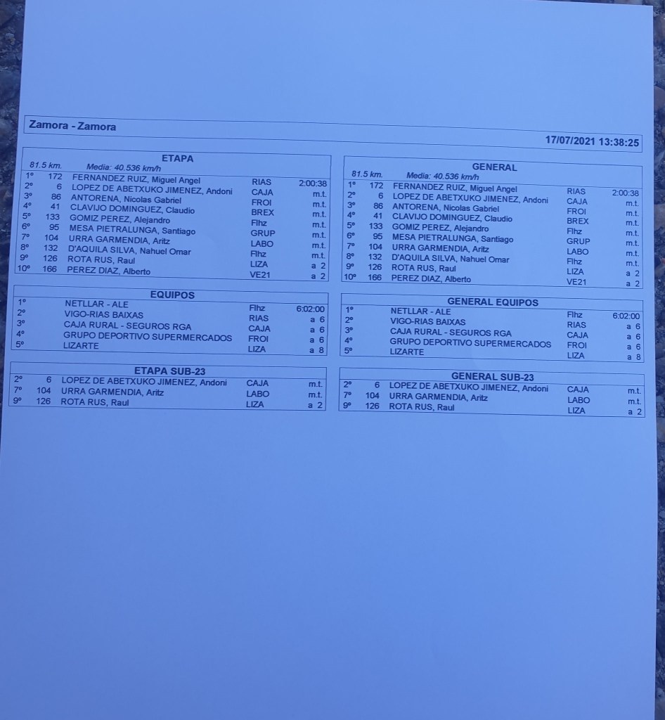capital zamorana. El cántabro, ganador este pasado miércoles de la segunda etapa de la Vuelta a Zamora con final en Benavente, se imponía con claridad en la llegada masiva con la que se resolvía la clásica zamorana, superando en los metros finales a Andoni López de Abetxuko (Caja Rural-RGA) y Nicolas Antorena (Supermercados Froiz). La quinta plaza fue para Alejandro Gómiz (Netlllar Alé) que perdió posiciones en la última rotonda y ya no pudo remontar. Su compañero Nahuel d’ Áquila termino octavo en el esprint final.