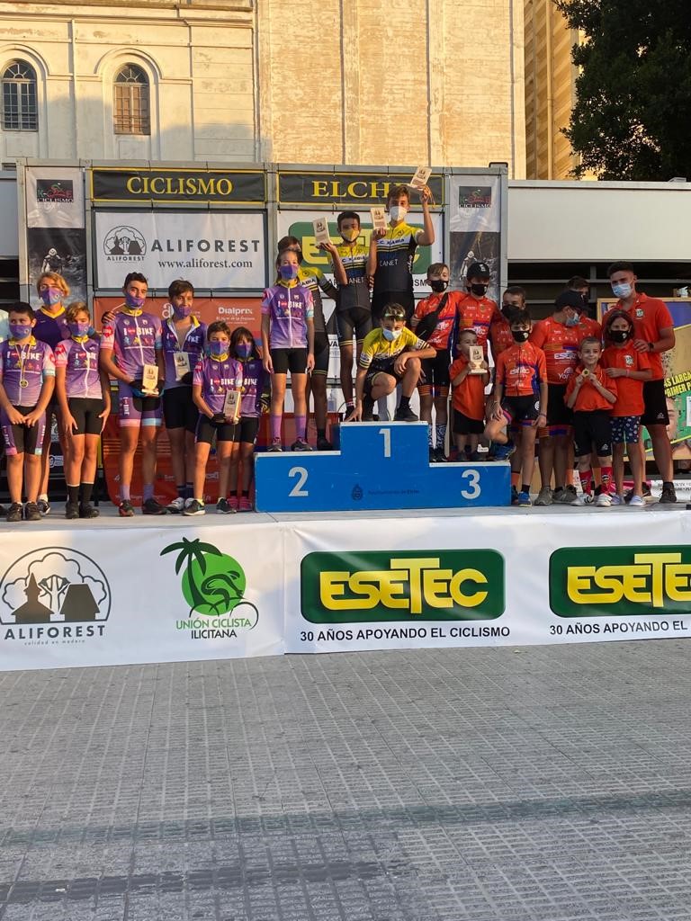La Escuela del Club Ciclista Jávea se ha impuesto esta tarde en el XX Trofeo Escuela de Ciclismo Elche-Memorial Antonio Sánchez Espinosa. Ha sumado 16 puntos, por los 15 del CC Almoradí y los 12 de la Unión Ciclista Ilicitana, que ha brillado al lado de los suyos. A nivel individual, Darío Castillo (Crevillent) y Helena Simarro (Novelda) han ganado en Promesas 1; Guillermo Rodríguez (Jumilla) y Aina Palomares (Novelda), en Promesas 2; Eugeniv Melnikov (San Vicente) y Valeria Coloma (AM Sonido), en Principiantes 1; Iker Balaguer (Sax) y Jimena Gas, en Principiantes 2; Mario Tomás (UC Ilicitana) y Adriana Segura (Almoradí), en alevines 1; Borja Giménez (UC Ilicitana) y María Mestre (Bernia-Xaló), en Alevines 2; Marc Moncho (Jávea) y Candela Cazorla (San Vicente), en Infantiles 1; José Ramón Guijarro (Almoradí) y Lucía Rodríguez (San Vicente), en Infantiles 2. En cadetes el triunfo ha sido para Belén Sánchez (Crevillent).