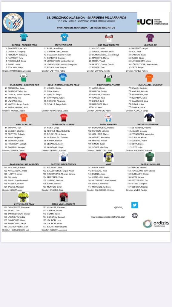 La Ordiziako Klasika contará hoy domingo con la presencia de tres equipos del World Tour –Astana, Movistar y UAE–, junto con ocho UCI Pro Teams y siete continentales que recorrerán 169 kilómetros con el circuito habitual, al que se darán cinco vueltas con la subida a Larraitz, y que en las dos últimas también presenta la ascensión a Altzo para endurecer el final. En la línea de salida habrá una amplia representació alicantina. Juan Ayuso correrá con el UAE Emirates; Rafa Valls lucirá el maillot del Bahrain Victorious; Eusebio Pascual y Javi Gil, el del Bahrain Cycling Academy; y Felipe Orts, del Burgos BH.