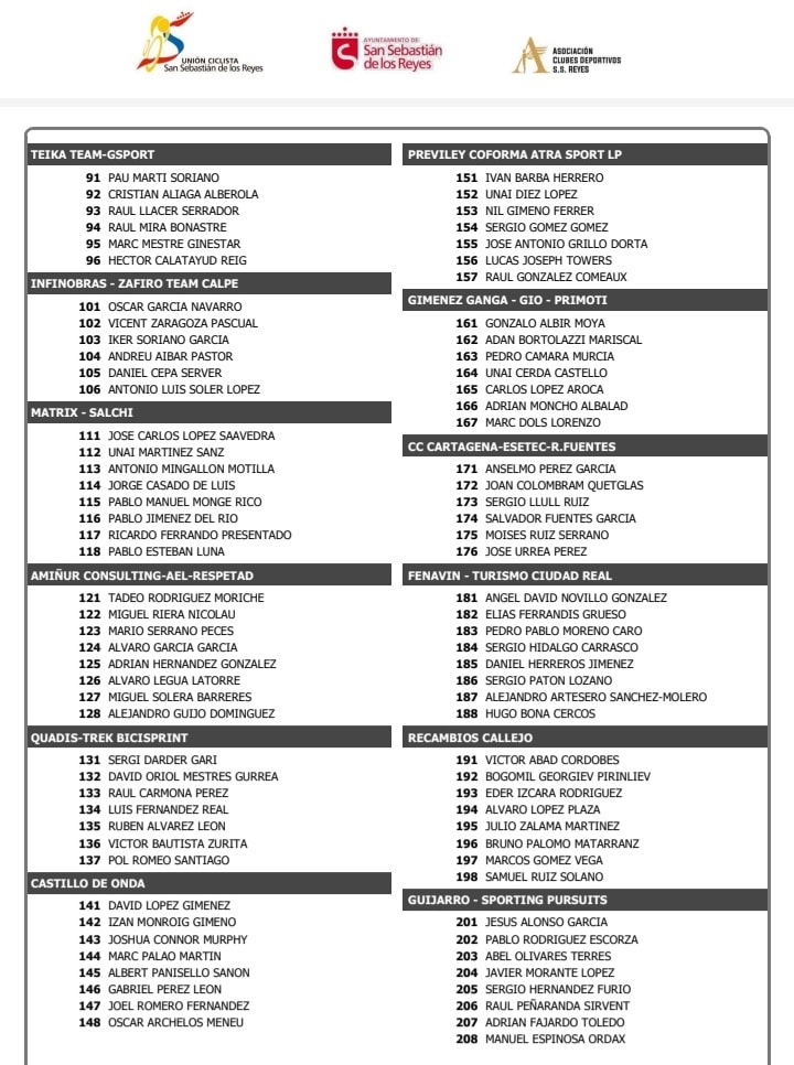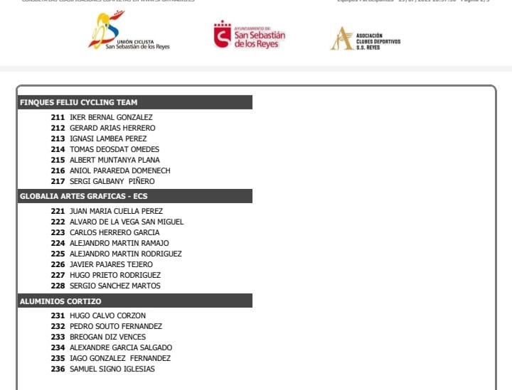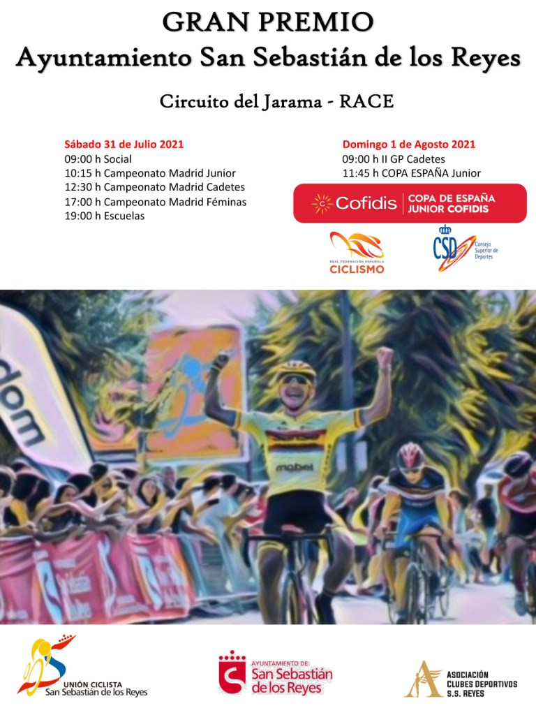 San Sebastián de los Reyes acoge el sábado el Gran Premio Ayuntamiento de la localidad madrileña que en esta ocasión se disputará en circuito de velocidad del Jarama, al norte de la capital, que tiene una longitud de 3.850 metros. Las vueltas y distancias vendrán determinadas por los jueces árbitros. Los júniors competirán a partir de las 10.15. En la prueba estarán el Giménez Ganga Gio Alicante Primoti y el Guijarro Sporting Pursuits. Los primeros, alinearán a Gonzalo Albir, Jorge Beltrán, Adán Bortolazzi, Pedro Cámara, Unai Cerdá, Marc Dolçs, Carlos López Aroca y Adrián Moncho. Y los del Club Ciclista San Vicente a Jesús Aloso, Manuel Espinosa, Adrián Fajardo, Sergio Hernández, Francisco Javier López, Sergio López, Mario Lozano, Javier Morante, Abel Olivares, Carlos Ortega, Raúl Peñaranda, Aarón Pérez, Aarón Poveda y Pablo Rodríguez.