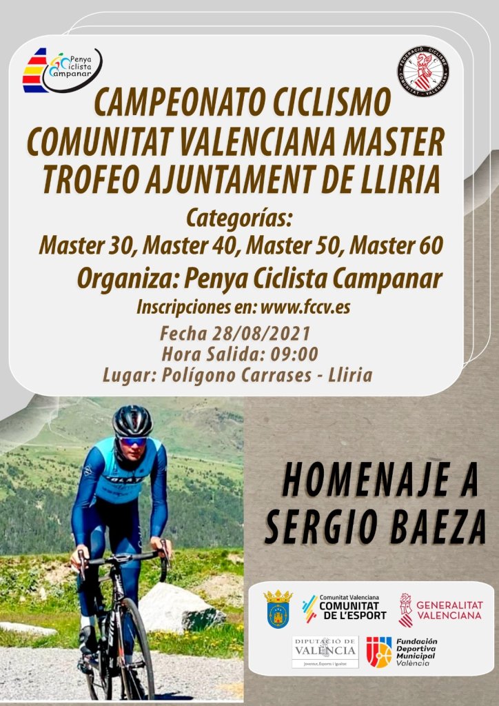 El Campeonato de la Comunitat Valenciana Máster Masculino-Trofeo Ajuntament de Lliria, se disputará el sábado 28 de agosto y estará organizada por la Penya Ciclista Campanar. Los M50 y M60 comenzarán a pedalear a las nueve de la mañana y tendrán un recorrido de 57 kilómetros y los M30 y M40 partirán a las once y su trazado contará con 78 kilómetros.