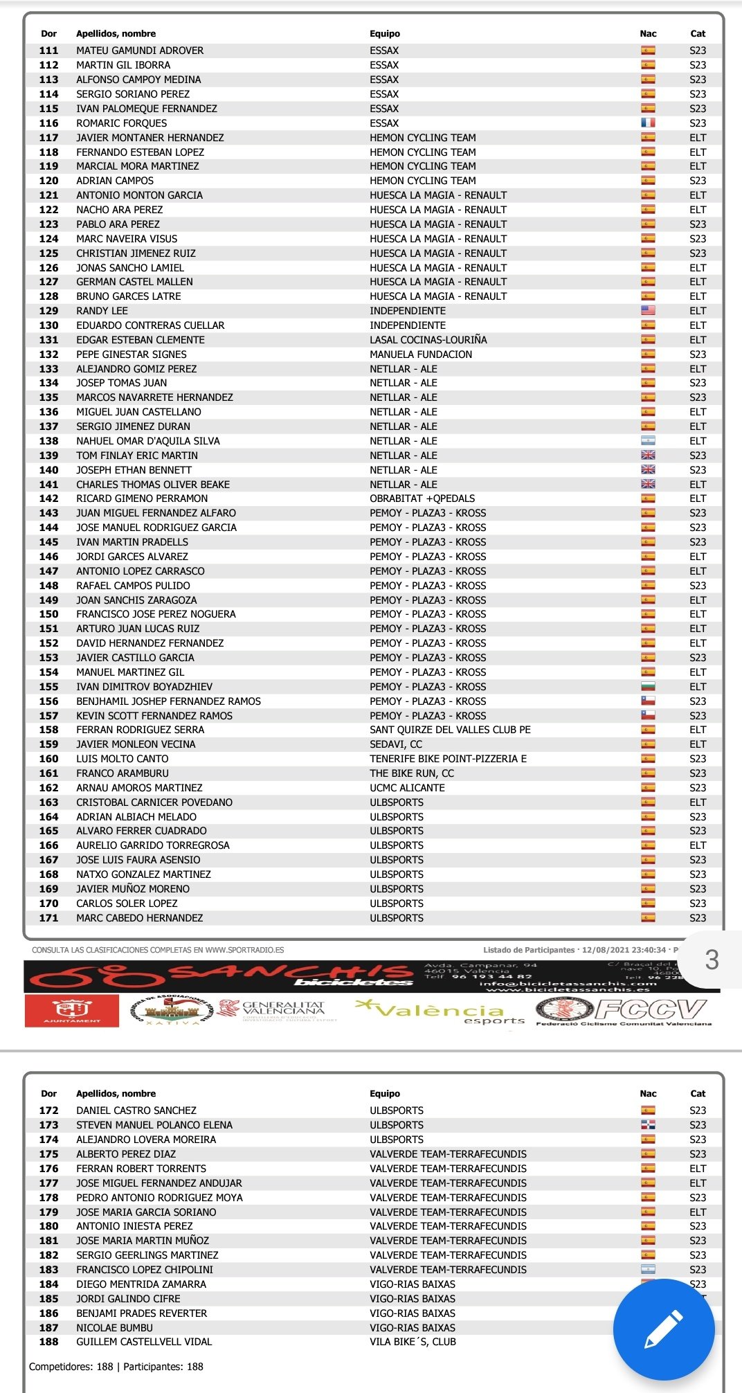 La prueba se disputa el lunes con la participación del Netllar Alé y Essax y la presencia de Mario Granero, Josué Gómez, Luis Moltó, Pablo Galvañ, Raúl Granados, Antonio Lozano y Carlos Soler