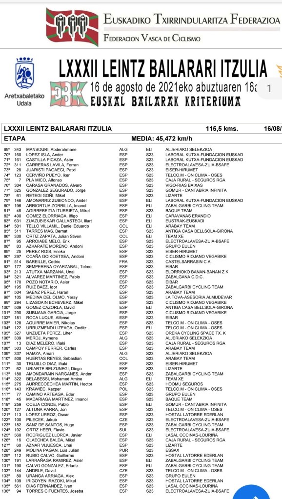 XXXI LAUDIO SARIA: Llodio – Llodio; 133 km (martes, 17 de agosto)