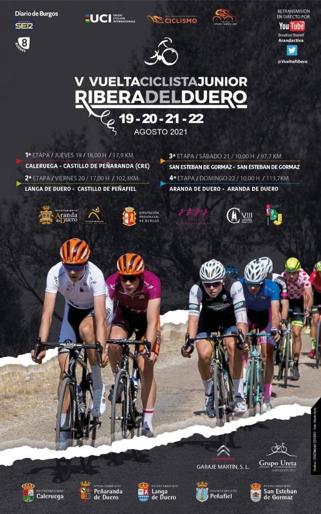 La Vuelta Júnior Ribera del Duero se disputa del 19 a 22 de agosto con la presencia de 27 equipos entres los que se encuentran escuadras de Bélgica, Francia, Portugal, Suecia y Estados Unidos, además de una gran representación nacional. Los alicantinos Giménez Ganga Gio Alicante Primoti e Infinobras Calpe estarán en la salida para recorrer 331 kilómetros a través de las provincias de Burgos, Valladolid, Soria y Segovia, que forman el territorio de Ribera del Duero. Carlos Rodríguez es el último ganador de la carrera en 2019.