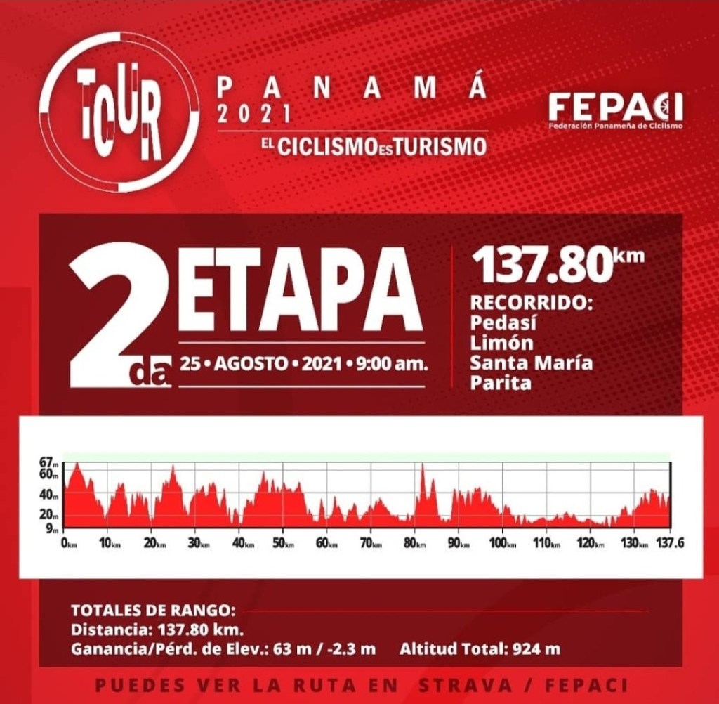Mañana se disputa la segunda etapa de la Vuelta a Panamá con inicio en Pedasí y final en el Parque del pueblo de Parita tras 137,8 kilómetros de recorrido.