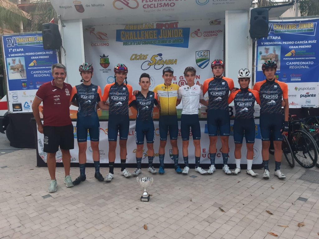 Dani Cepa (Infinobras) se ha impuesto esta tarde en Beniel en la primera prueba de la IV Challenge Júnior Vuelta a las Comarcas Región de Murcia, el V Memorial Pedro García Ruíz. El alicantino ha entrado en solitario a meta demostrando una vez más que su progresión esta temporada está siendo espectacular. «En los últimos kilómetros he cogido un corte y enseguida hemos abierto hueco. Cuando me he dado cuenta que no pasaban al relevo he atacado y me he ido solo de cara a meta», comentaba un satisfecho Cepa antes de dedicar esta victoria «a mi padre, porque gracias a él me aficioné a este deporte y siempre está detrás mía ayudándome en muchas cosas».