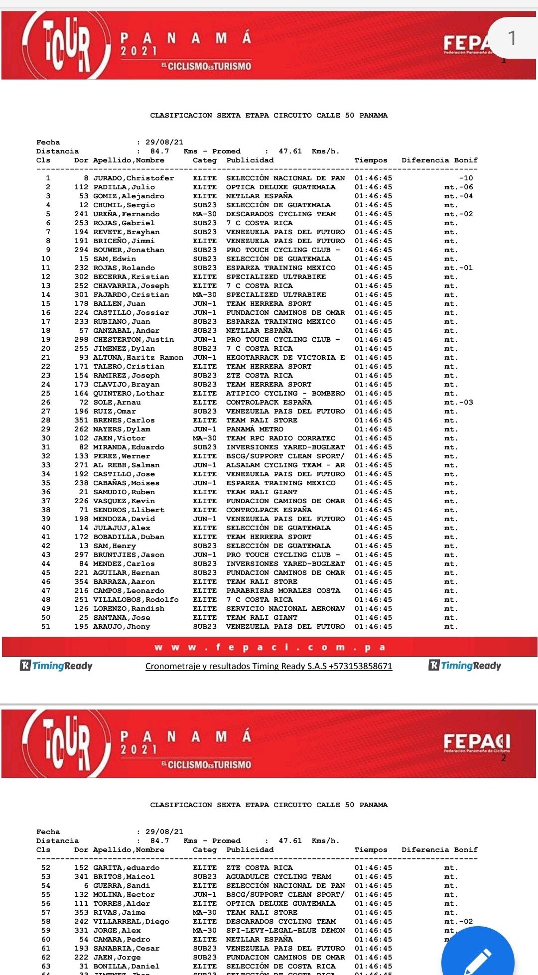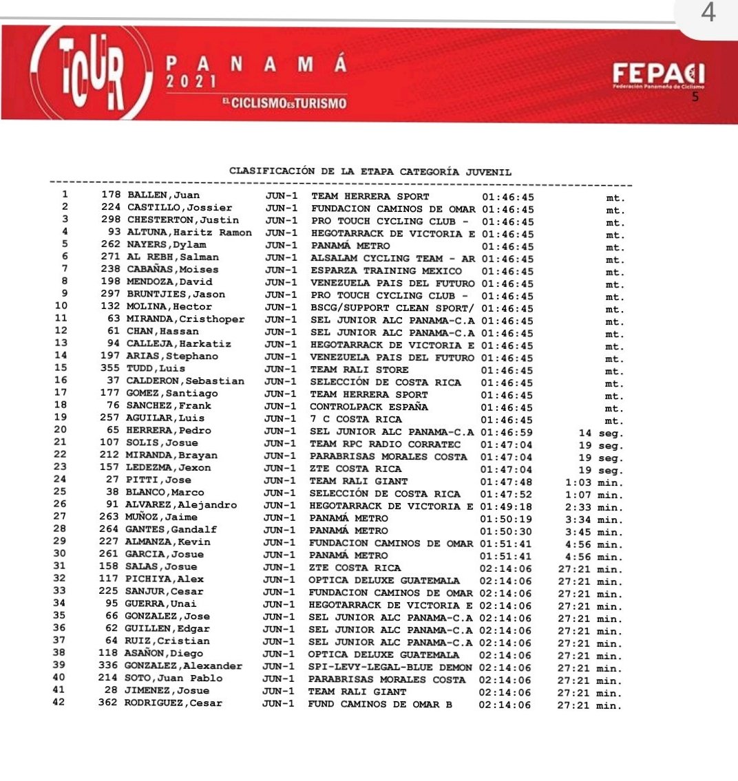 Cristofer Jurado (Panamá) se ha impuesto al esprint en la última etapa del Tour de Panamá, que se ha disputado en un circuito cerrado en la Calle 50 de la capital panameña. La tercera plaza ha sido para Alejandro Gómiz (Netllar Alé), que una vez más se ha dejado ver en los metros finales a pesar del nivel de la ronda. Franklin Archibold (Panamá) ha sido el vencedor de la general, con Sergio Jiménez (Netllar Alé) ocupando el puesto sexto. Buen trabajo de todo el equipo de la Fundación Benicadell. Una bonita experiencia para todos ellos y en especial para los juveniles Marc Dolçs y Pedro Cámara que lucieron el maillot del Giménez Ganga.