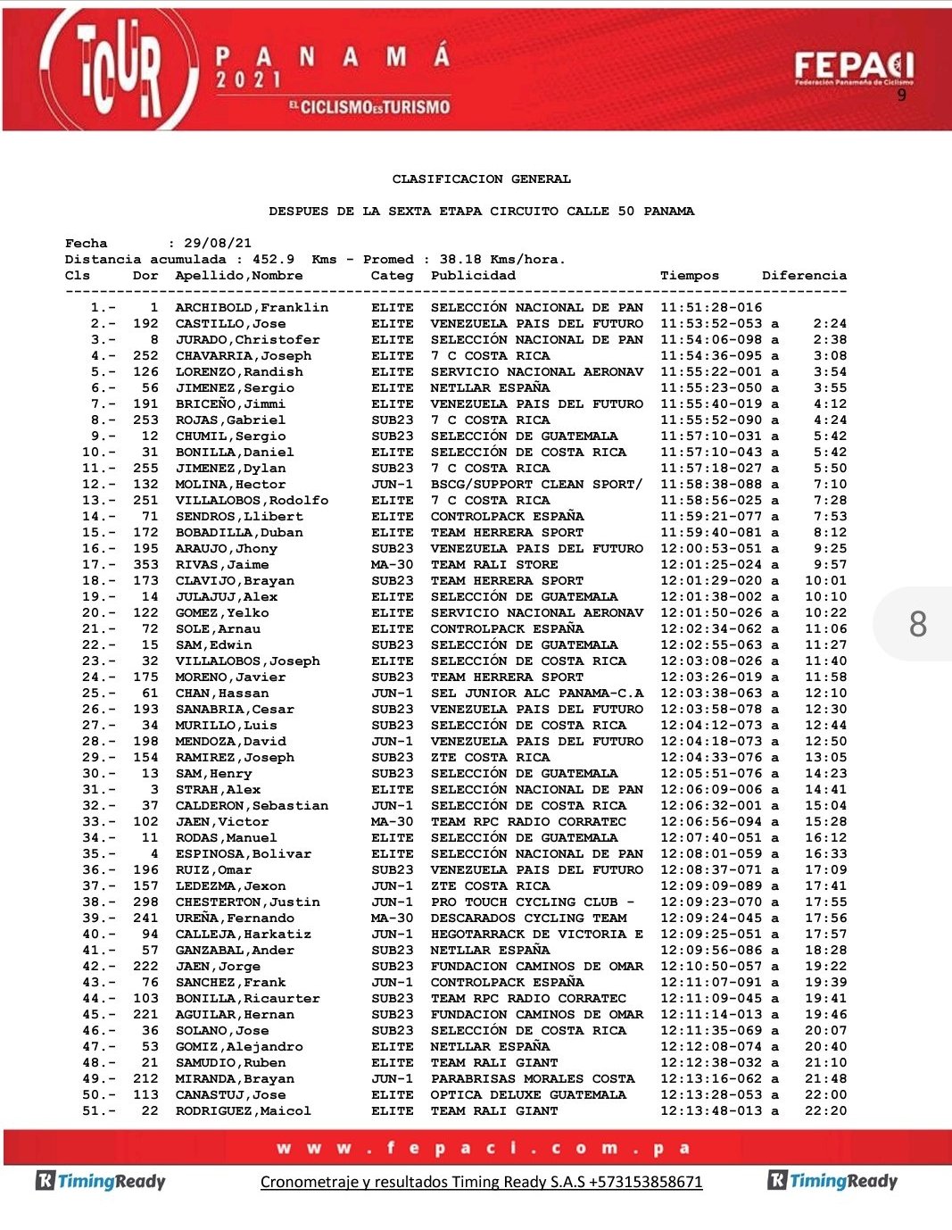Franklin Archibold ha sido el vencedor de la general, con Sergio Jiménez (Netllar Alé) ocupando el sexto puesto