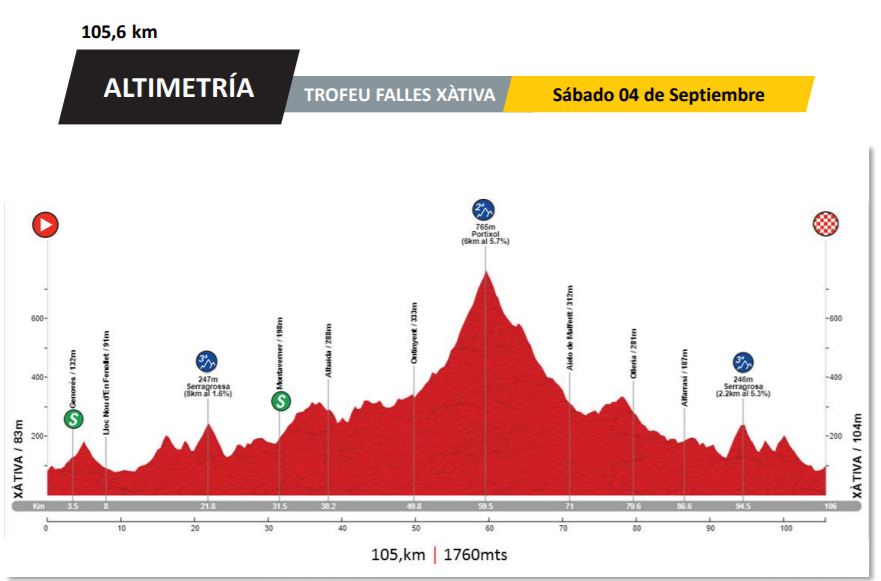 En cuanto al recorrido, los corredores tendrán que afrontar 105 kilómetros con un desnivel positivo de 1.760 metros, con salida y llegada en la localidad valenciana de Xàtiva. Durante la prueba, los ciclistas también deberán enfrentarse a tres puertos puntuables. El primero de ellos Serragrossa, de tercera categoría con una longitud de 8 kilómetros al 1,6%, que lo subirán al inicio de la prueba, y al final, a tan solo 10 kilómetros de la llegada, lo subirán por la otra vertiente con 2.2 kilómetros al 5,7% No obstante, a 45 kilómetros tendrán que ascender el Portixol, de segunda categoría y con una longitud de 6 kilómetros al 5,7%, que podría romper la carrera.