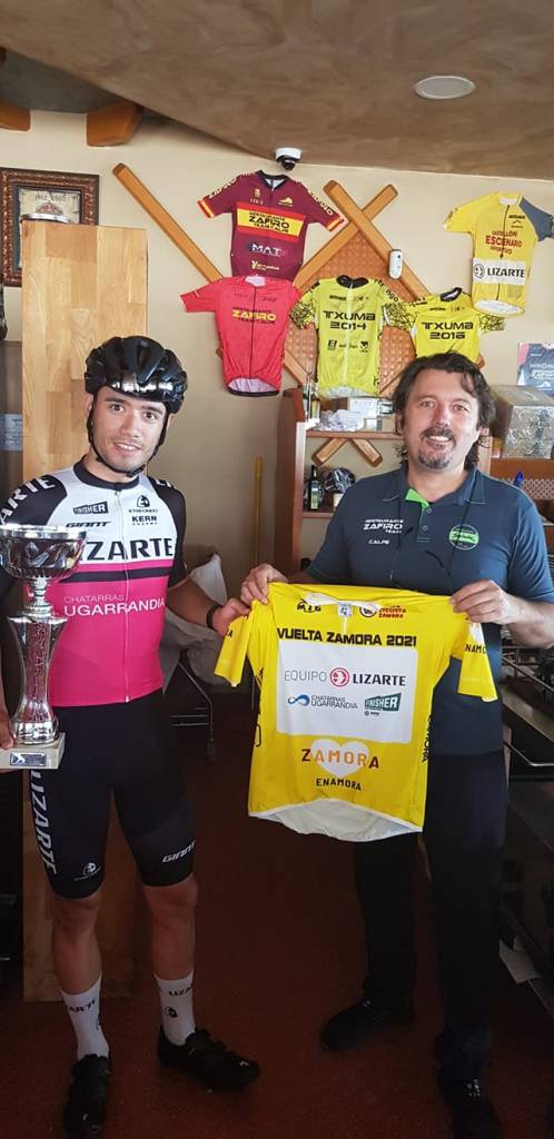 | Eugenio Sánchez llega para quedarse en el pelotón profesional. Al final su perseverancia ha tenido premio y ya está con los mejores. «Eres más valiente de lo que crees, más fuerte de lo que pareces y más inteligente de lo que piensas». Palabras del personaje Christopher Robin de A. A. Milne que el ciclista calpino ha hecho suyas cuando no lograba tocar la gloria. En los momentos en los que no salían las cosas como quería tuvo delante una doble opción; o se daba por vencido o seguía adelante. Optó por la segunda y ahí está, saboreando el sueño de correr con los mejores. No sólo es capaz de ganar vueltas como la de Castellón y Zamora si no que también es capaz de trabajar por sus compañeros en cada prueba y los que saben de ciclismo se han dado cuenta de esa polivalencia para darle la oportunidad que merecía. El Equipo Kern Pharma acaba de anunciar que incorporará la próxima temporada un tercer y un cuarto corredor formados en el Equipo Lizarte, tras los ya anunciados fichajes de los campeones de España sub 23 Igor Arrieta e Iván Cobo. El catalán Pau Miquel, ganador de la Copa de España, y el alicantino Eugenio Sánchez, triunfador en la reciente Vuelta a Zamora, son los dos elegidos por Manolo Azcona y Juanjo Oroz para engrosar las filas del conjunto farmacéutico desde su raíz. “Hemos decidido pasarles a profesionales porque queremos dar continuidad a nuestra filosofía de cantera”, asevera Manolo Azcona, presidente del Equipo Kern Pharma y el Equipo Lizarte. “Tenemos la suerte de que hemos formado en el equipo a ciclistas de alto nivel y es un orgullo darles esta oportunidad sabiendo que van a dar la talla”. Pau Miquel, vestido del Equipo Kern Pharma, muestra el maillot del Equipo Lizarte «Pau Miquel es un corredor que ha crecido temporada a temporada en el Equipo Lizarte hasta dominar este año la categoría sub 23”, define Juanjo Oroz, mánager general y director deportivo del Equipo Kern Pharma y el Equipo Lizarte. “Tiene un perfil muy atractivo para el profesionalismo por cuanto es capaz de pasar la montaña con los mejores y cuenta con una buena punta de velocidad. Con el tiempo puede obtener excelentes resultados y le auguro un largo recorrido en el Equipo Kern Pharma”. “Para nosotros es un orgullo y una alegría poder materializar el paso a profesional de Eugenio Sánchez”, continúa Juanjo Oroz. “Desde su primera carrera con el Equipo Lizarte ha demostrado una implicación máxima con el equipo. En este último año, pese a estar jugándose el salto de categoría, ha sido muy generoso con sus compañeros y ha puesto orden en cada competición, demostrando su oficio y su excelente lectura de carrera. También ha logrado ganar dos vueltas de muchísimo prestigio y nivel como Castellón y Zamora. Sus virtudes le pueden convertir en un magnífico gregario en el campo profesional”. |