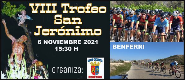 El VIII Trofeo San Jerónimo, organizado por el Club Ciclista Benferri, previsto inicialmente para el día 25 de septiembre, se aplaza y pasará a disputarse el próximo 6 de noviembre a partir de las 15:30 horas. La prueba está reservada a las categorías ´Élite, Élite Fem., Júnior, Júnior Fem., Máster 30, Máster 30 Fem., Máster 40, Máster 40 Fem., Máster 50, Máster 50 Fem., Máster 60, Máster 60 Fem., Sub23 y Sub23 Fem.