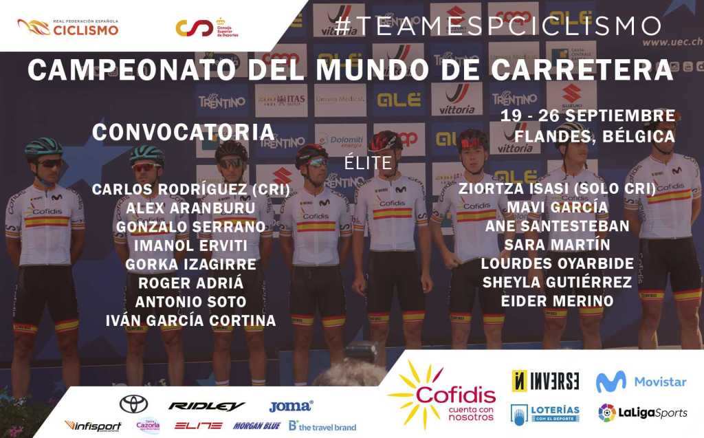 Iván García Cortina, Imanol Erviti, Gonzalo Serrano, Gorka Izagirre, Roger Adriá y Antonio Jesús Soto completa la lista de Pascual Momparler y Mavi García, principal baza de la selección femenina.