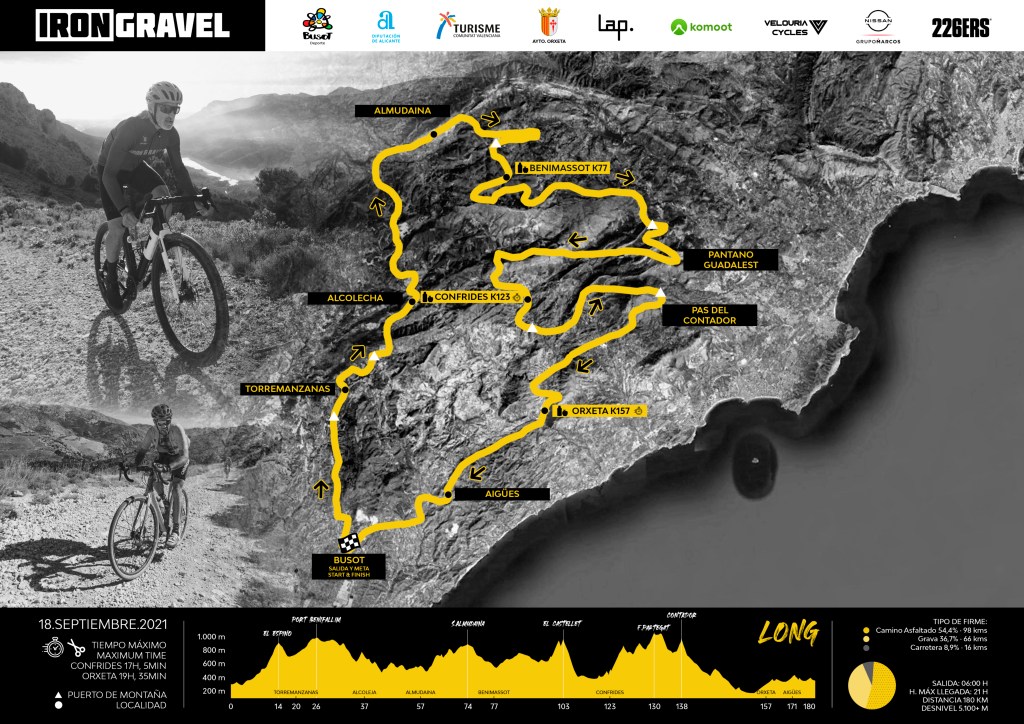Busot, Xixona, La Torre de Les Maçanes, Benifallim, Alcoleja, Penàguila, Benasau, Gorga, Millena, Balones, Almudaina, Tollos, Benimassot, Quatretondeta, Fageca, Famorca, Castell de Castells, Benimantell, El Castell de Guadalest, Beniardá, Confrides, Sella, Orxeta y Aigües son los municipios por los que discurrirá la única prueba Gravel que se celebra en la Comunidad Valenciana y una de las pocas del país.