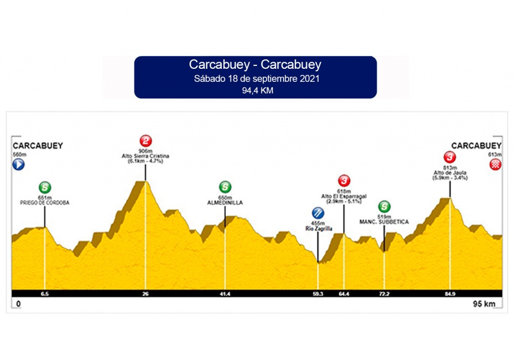 Salida de Carcabuey y pasos por Priego de Córdoba, Fuente Tojar, Castil de Campos, La Concepción, Almedinilla, Priego, El Esparragal, Zagrilla y meta en Carcabuey.