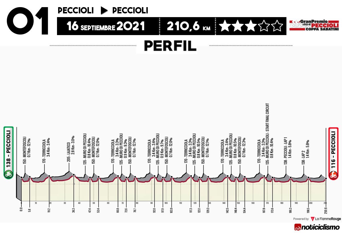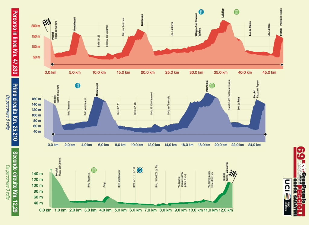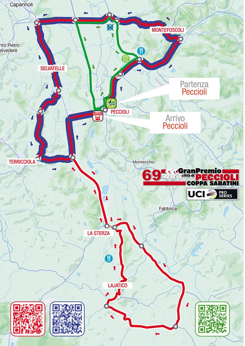 La carrera italiana, con inicio y final en Peccioli, se compone de tres tramos: