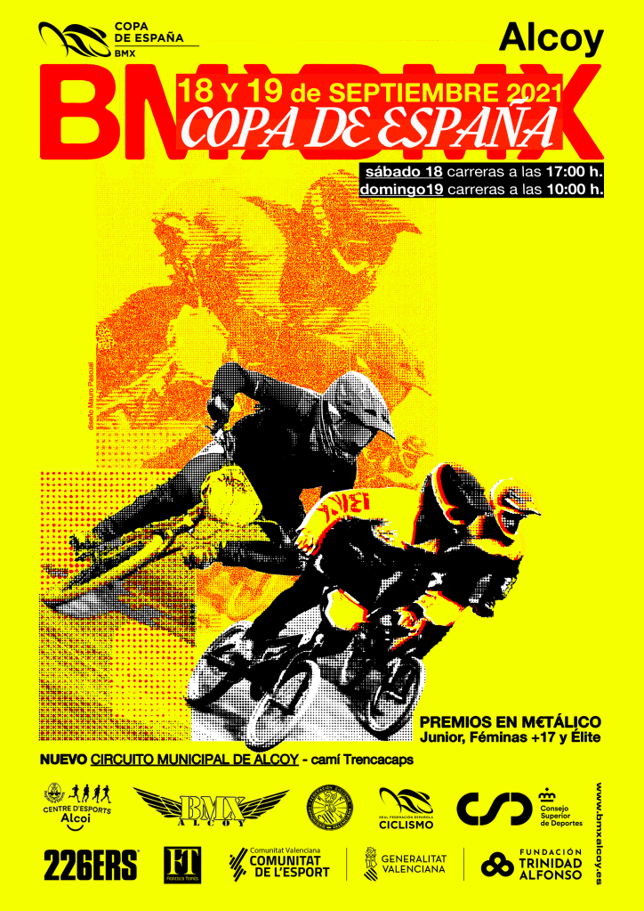 Este fin de semana, los días 18 y 19 septiembre, se disputa el Gran Premio de Alcoy perteneciente a la XXV edición de la Copa de España de BMX. El Club Ciclista BMX Alcoy, organizador del evento, considera “un honor” poner en marcha esta competición en el nuevo circuito municipal y asegura que “es el resultado de muchos años de esfuerzo por este deporte por parte de los socios de nuestra entidad, que han trabajado para evolucionar y expandir esta modalidad olímpica en nuestra ciudad. Desde el Club BMX Alcoy esperamos que todos los asistentes puedan disfrutar de la competición y nuestras instalaciones en un entorno incomparable, disfrutando de la variedad que os ofrece Alcoy”