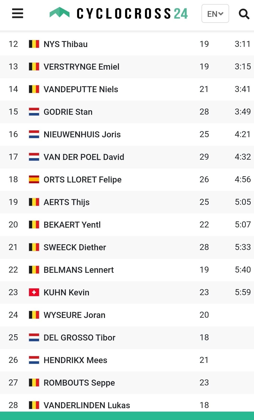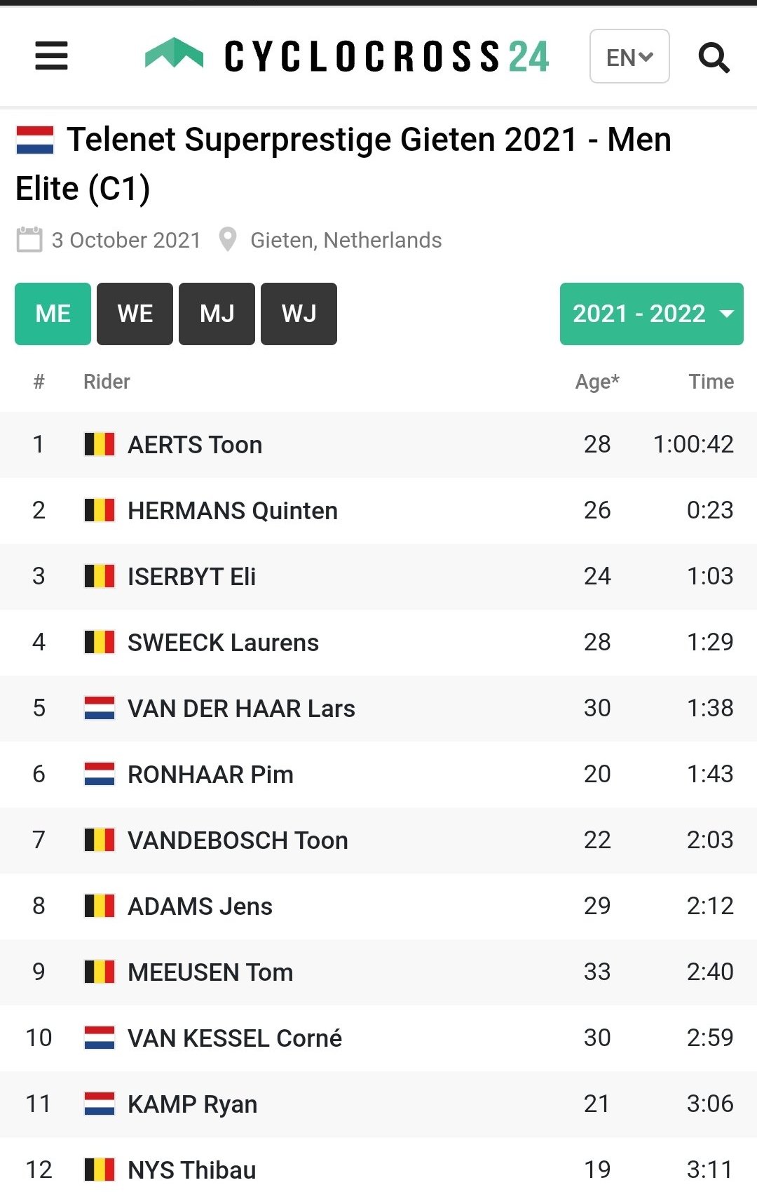 Felipe Orts (Burgos BH) ha finalizado en el puesto 18, en el mismo puesto que el sábado en Meulebeke. «No han sido dos grandes resultados, pero si dos grandes esfuerzos, para arrancar esta temporada de ciclocross 2021/22», comentaba el vilero en su cuenta de Twitter.