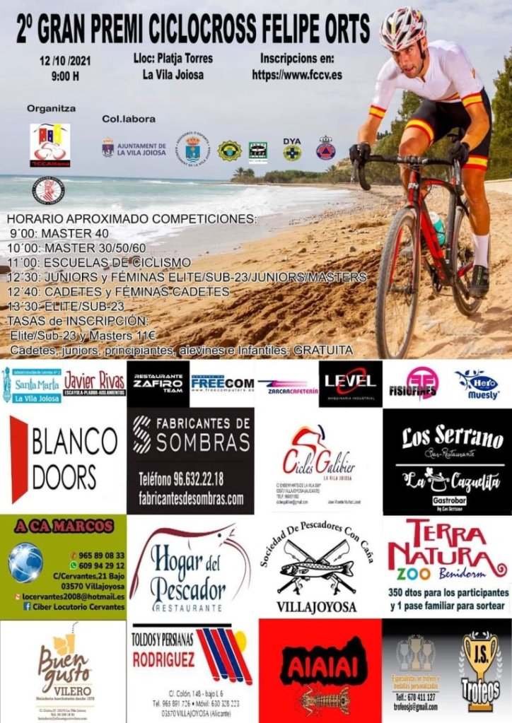 La Vila se viste de gala para recibir el martes por la mañana a su ídolo: Felipe Orts. El martes, 12 de octubre, a partir de las nueve horas, se disputa la segunda edición del Gran Premi Felipe Orts de Ciclocross con una gran participación de 382 ciclistas, 124 de las categorías Infantil, Alevín y Principiantes. La competición se desarrollará en un circuito diseñado en la Platja Torres y todos quieren estar con su ídolo. Toda una fiesta del ciclocross para disfrutar de este deporte y animar al dorsal número 13.