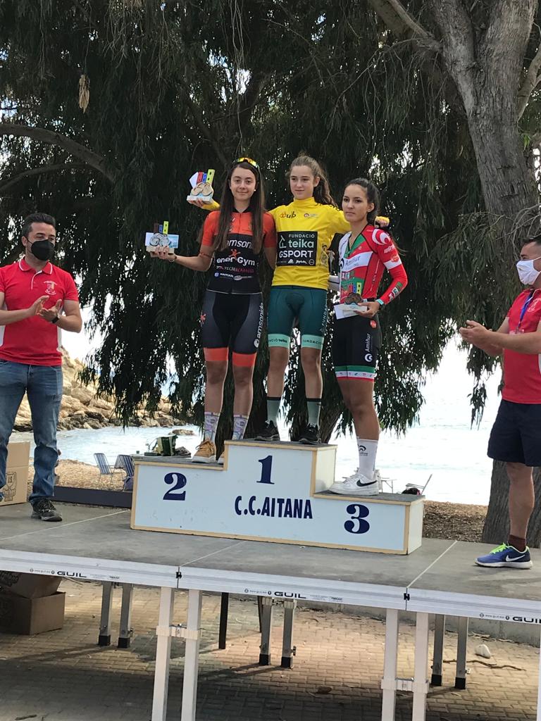En cadetes, se ha impuesto el alicantino David Ivars (Teika UCI Team), con Eric Igual (Teika UCI Team), segundo, y Carlos Calle (Amiñur), tercero. Leyre Almena (Fundación) se ha impuesto a Raquel Pérez (AM Sonido), que ha sido segunda, y a Aroa Rodríguez (Amiñur), en féminas. «He puesto un ritmo fuerte desde el principicio y me he encontrado muy bien hasta meta», señalaba Ivars tras bajar del podio.