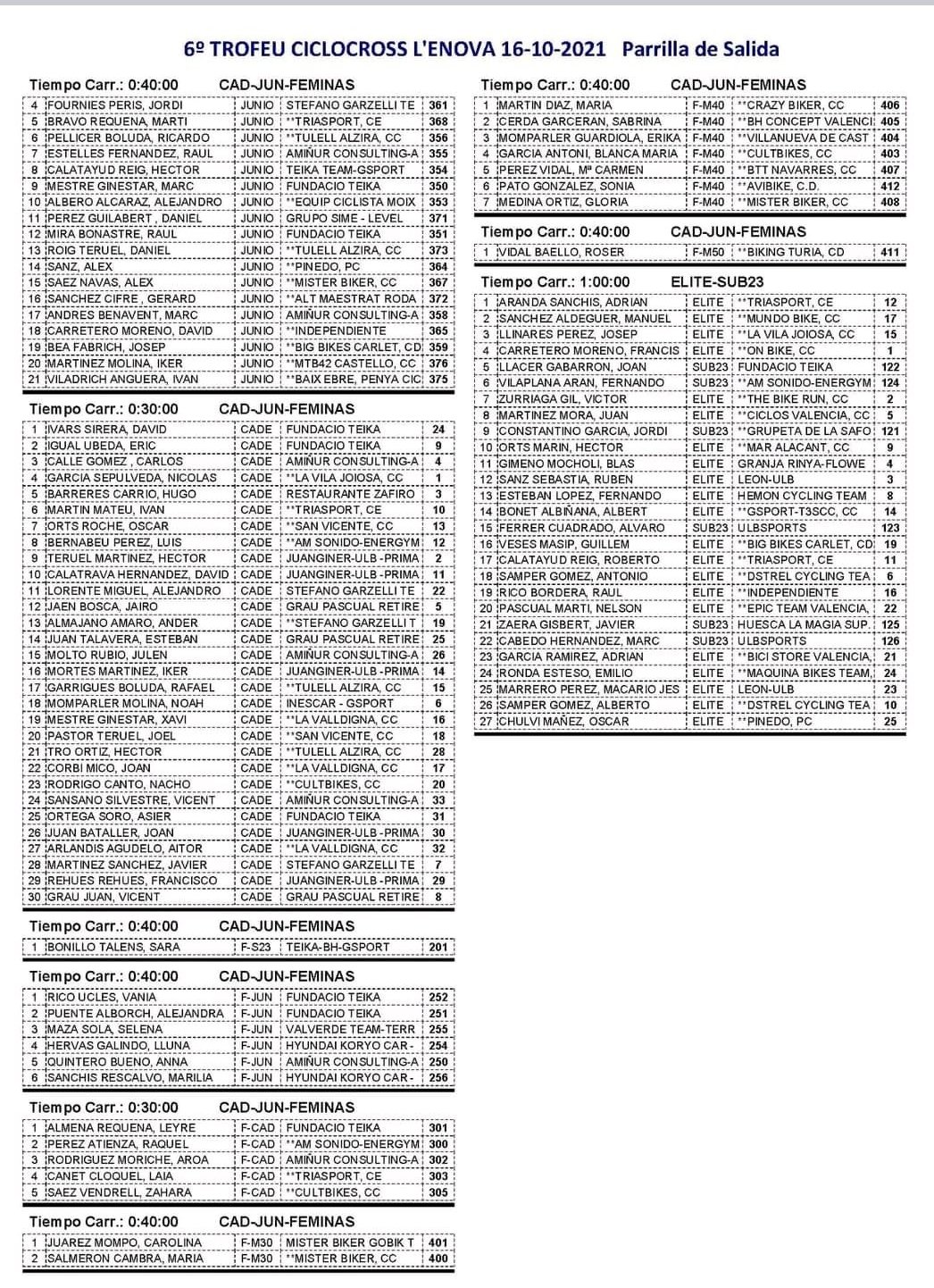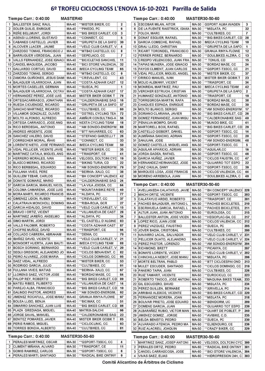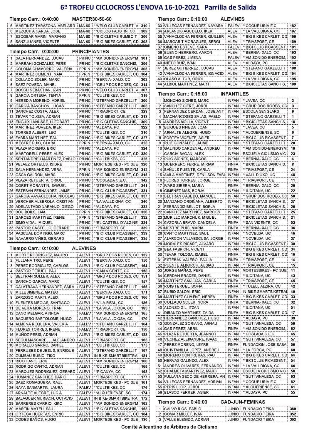 El sábado, día 16 de octubre, se disputa el VI Trofeu Ciclocross L’Énova a partir de las nueve horas. La prueba está reservada a las categorías Sub 23, Máster 60 fem., Máster 60, Máster 50 fem., Máster 50, Máster 40 Fem., Máster 40, Máster 30 fem., Máster 30, Júnior fem., Júnior, Escuelas, Elite UCI, Elite fem., Elite, Cadete fem., Cadete y Sub 23 Fem. A esta segunda prueba de la Challenge de la Comunitat Valenciana-Homenaje Pascual Momparler acuden 420 participantes.