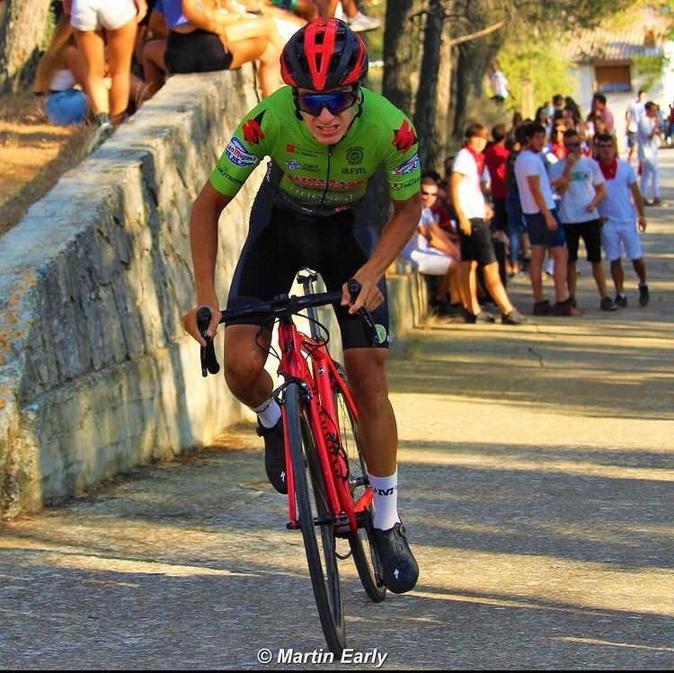 Desde pequeño mi padre, futbolero, me inculcó los valores del deporte. Desde los 6 años pase por distintos deportes hasta encontrar el que me apasionaba de verdad, el ciclismo. A los nueve comencé a practicarlo y enseguida empecé a competir en Principiantes. En las categorías de escuelas pasé por el Club Ciclista Zaragozano de mi ciudad y por el equipo del pueblo natal de mi madre, el Club Ciclista Turiaso de David García. Recuerdo esa etapa como una de las más felices de mi vida, todo era disfrutar, hacer grandes amigos… ¡Hasta me gustaban las gymkanas!. Ya en Cadetes fui integrante del equipo Grupo Aldia Vive Huesca de Santiago Catalán y Miguel Bergua. Durante el primer año tuve una “crisis”, por así decirlo, con este deporte. Hasta cadetes de segundo año no pegué el estirón y lo pasaba muy mal en las carreras, que cada vez eran más exigentes, por lo que fui perdiendo la motivación. Aún así continúe el siguiente año con más ganas que nunca e hicimos una buena piña, conseguimos ganar por equipos en vueltas como la Aiarako Bira y a nivel personal tuve muy buenos resultados en rondas como Villafranca y el Bajo Aragón o carreras en Navarra. El primer año de Júniors lo disputé en las filas del equipo Fundación Lintxu. Fue muy raro, debido a la pandemia solo pudimos correr una carrera que me dejó con muy buen sabor de boca ya que me metí en la escapada del día. Tras el parón corrí apenas un par de pruebas y, por desgracia, en los Campeonatos de España de Llucmayor me fracturé la clavícula. Llegué con fuerzas a este año 2021. La Fundación Lintxu desaparecía y pasé a formar parte del equipo Huesca la Magia. A comienzos de temporada la suerte no me acompañaba y todavía no se corrían muchas carreras. Entrábamos en el verano, con la suerte ya de mi lado y empecé a obtener mejores resultados: premio de las metas volantes en Tafalla, top 15 en Vuelta Pamplona y un 52 puesto en los Campeonatos de España donde una avería me dejaba fuera del grupo principal. He ido probando suerte en carreras de un día por Navarra o País Vasco, obteniendo buenos resultados, pero la palma llegaría con la última carrera del año, el Campeonato de Aragón, donde vencería en la carrera y el campeonato.