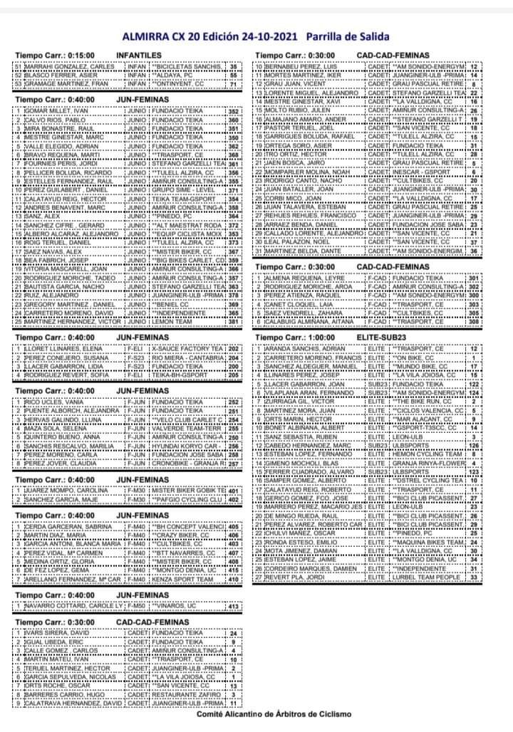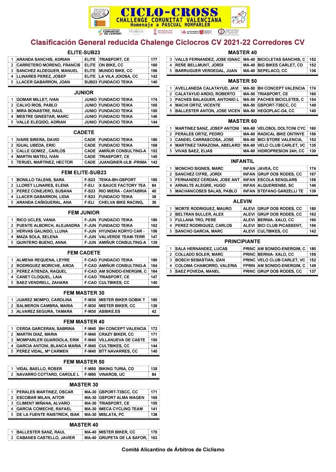 16 Octubre – L’Énova (Nacional 1.33.5). Clasificaciones