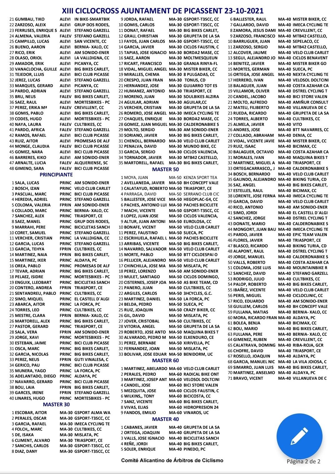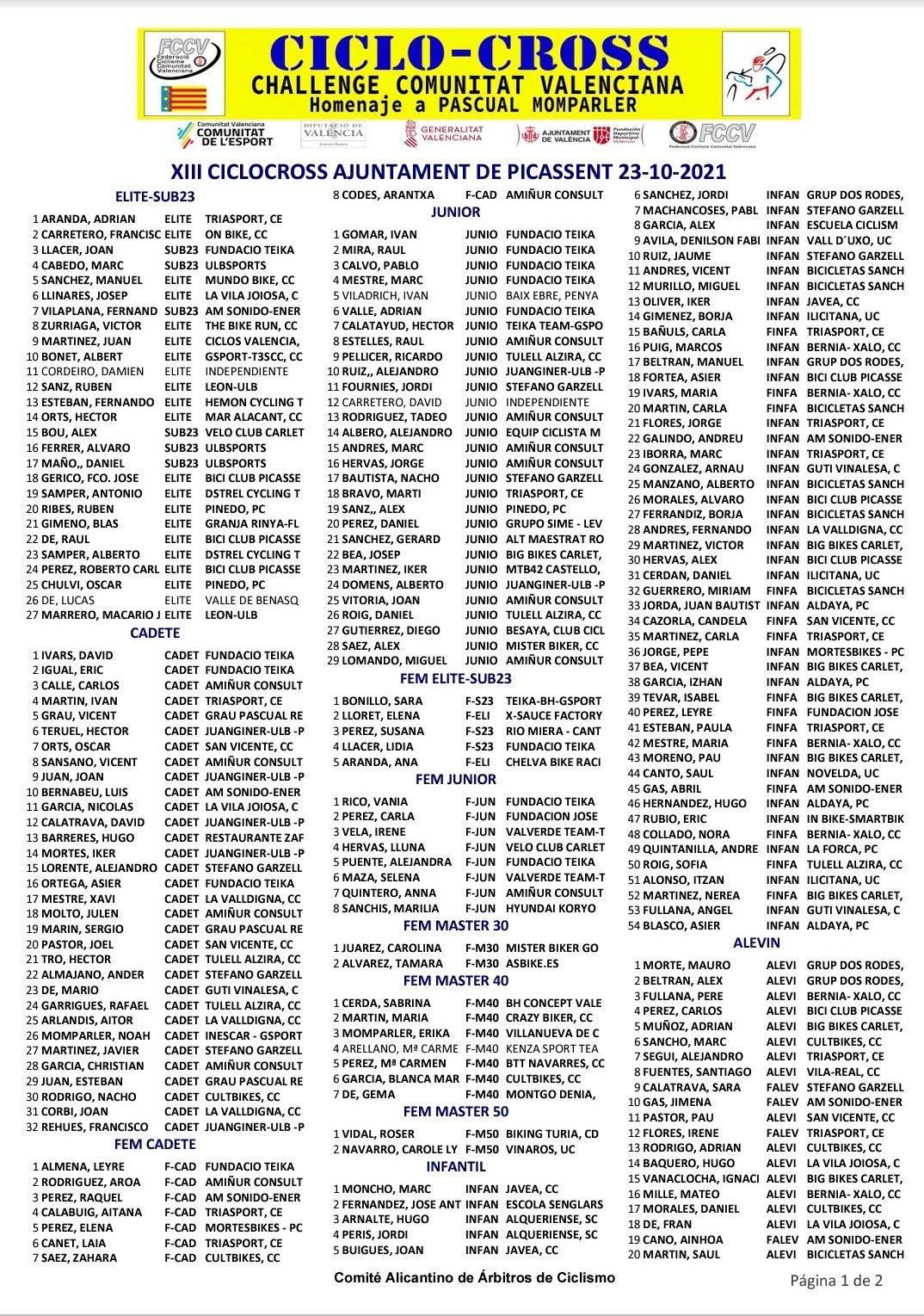 23 Octubre – Picassent (Nacional 1.33.5). Clasificaciones