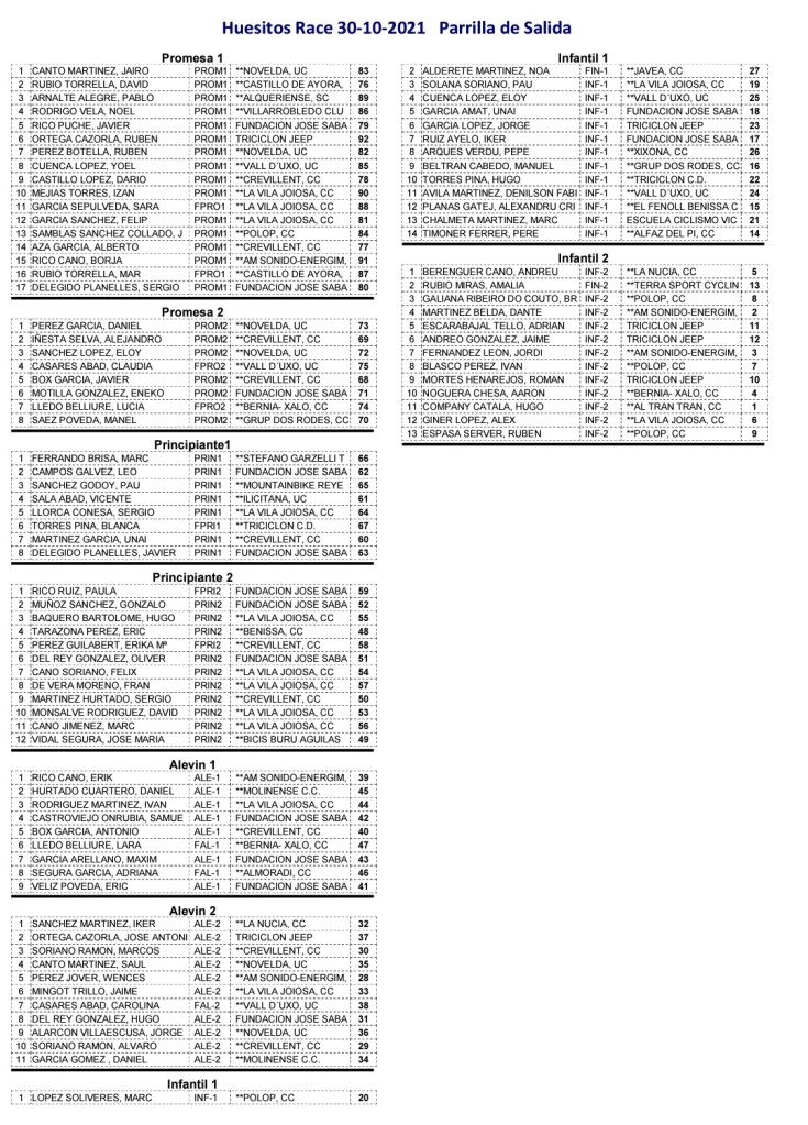 El sábado, día 30 de octubre, La Vila acoge la primera edición de la Huesitos Race de BTT reservada a la categoría de escuelas. La competición dará comienzo a las 16 horas en la Platja del Torres. La parrilla de salida está compuesta por 92 ciclistas.