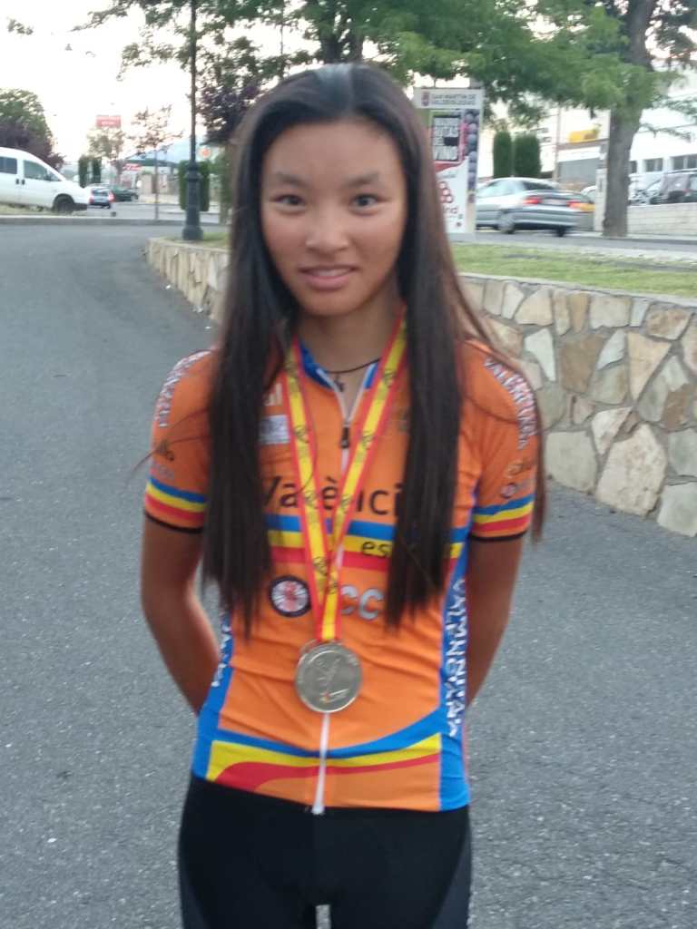 Claudia Xiangfeng Galiano Zarco (Nanchang, 26 de marzo de 2006) reside en Alicante desde que el 21 de enero de 2007 fuera adoptada por sus padres. Tras un debut espectacular en la categoría cadete con el GD Llopis competirá en 2022 con la UC Fuenlabrada, escuadra con la que ya corrió este año en la Vuelta a Beirás en Portugal. Le hubiera gustado seguir en el Club Ciclista San Vicente pero no va a sacar equipo femenino y se ha visto obligada a irse. Es una escaladora, disfruta subiendo los puertos duros, que se maneja a la perfección en el llano. Sus ídolos son Alejandro Valverde y Primoz Roglic y para su edad es muy madura, tanto encima de la bicicleta con en el resto de momentos de su vida.