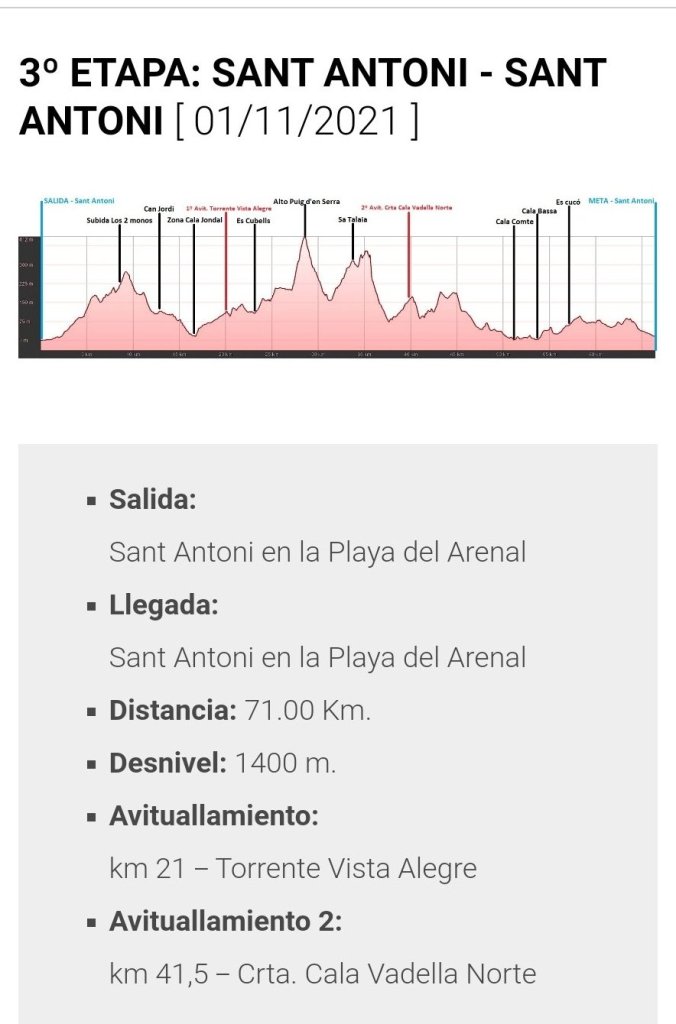Con 71 km y 1.400 metros de desnivel hay terreno para que haya lucha por los puestos de honor de la carrera hasta el último metro. Tendrá inicio y meta en Sant Antoni.