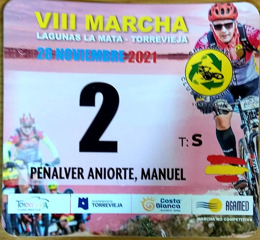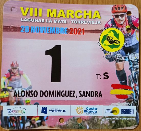 Este domingo, 28 de noviembre, el CD Chatarras organiza la VIII Marcha Lagunas La Mata-Torrevieja de BTT. La salida será a las 10:00 horas desde el Auditorio Internacional de Torrevieja. Se trata de una prueba solidaria, no competitiva, que irá a beneficio de la ONG local Alimentos Solidarios. El club solicita a los participantes a aportar un paquete de alimentos no perecederos o productos para niños. La organización ha invitado a Sandra Alonso y Manuel Peñalver a participar en el evento y les ha concedido los dorsales 1 y 2, respectivamente.