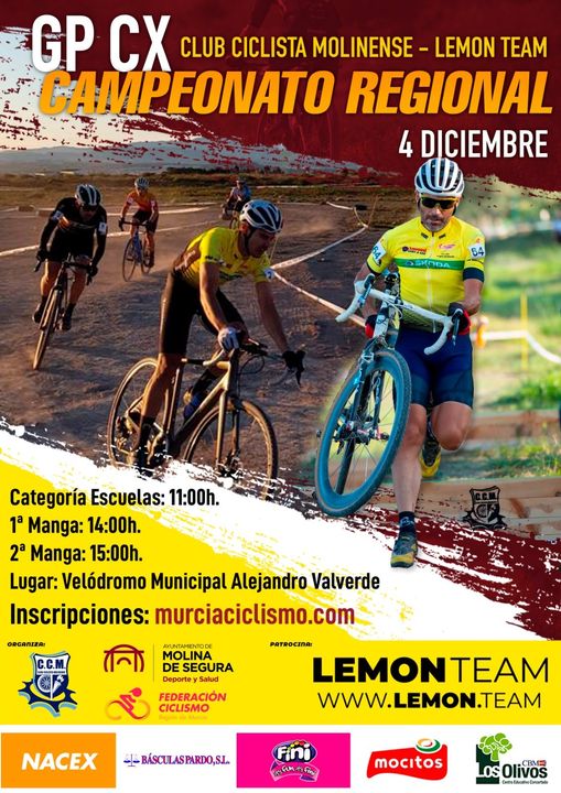 Claudia Pérez (Cronobike), Quico Llinares (La Vila) y Jean Paul Gambaiani (Guijarro) defenderán el sábado, en Molina del Segura, el liderato en el CX Race Región de Murcia. El GP Club Ciclista Molinense-Lemon Team, que es Campeonato Regional de Murcia, dará comienzo a las once horas con las carretras de Escuelas. El resto de competiciones empezarán a las 14 y 15 horas. El Velódromo Municipal Alejandro Valverde acogerá la cuarta prueba de dicho torneo. Ya el lunes, a partir de las diez, se disputará la quinta, la II Superprestige Villa de Alcantarilla. En dicha carrera también estará Óscar Orts (GD Llopis) que es el líder de la categoría cadete y que el sábado disputará la prueba de pista en San Vicente del Raspeig.