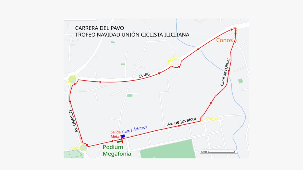La Unión Ciclista Ilicitana (UCI) informa que están abiertas las inscripciones para la tradicional Carrera del Pavo previstas para el sábado, 18 de diciembre, a partir de las 15.30 horas, con salida y meta en el número 12 de la Avinguda de Juvalcoi y 60 kilómetros de recorrido. Se darán 16 vueltas a un circuito de 3,7 kilómetros. Está reservada a las categorías Sub23 Fem., Sub23, Máster 60 Fem., Máster 60, Máster 50 Fem., Máster 50, Máster 40 Fem., Máster 40, Máster 30 Fem., Máster 30, Júnior Fem., Júnior, Élite Fem. y Élite. El precio de la inscripción es de 15 euros y los socios de la UCI participarán de forma gratuita. Señalar que los cinco socios primeros clasificados de la Unión Ciclista Ilicitana tendrán premio.