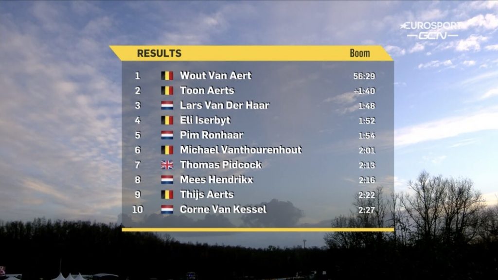 Wout van Aert ha ganado el Superprestige de Boom en su debut en el barro en esta temporada. El belga de Jumbo-Visma no toleró ninguna oposición y cruzó la meta con más de minuto de ventaja sobre sus perseguidores. Toon Aerts entró en segunda posición y Lars Van Der Haar, tercero. Felipe Orts (Burgos BH) tras recuperarse de un inicio complicado ha terminado en el puesto 15. Se ha adaptado bien al barrizal belga y mantiene el pulso en el Superprestige.