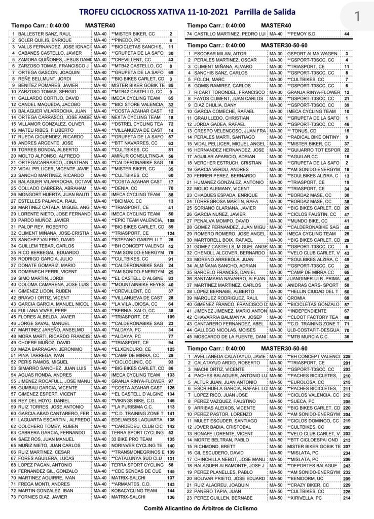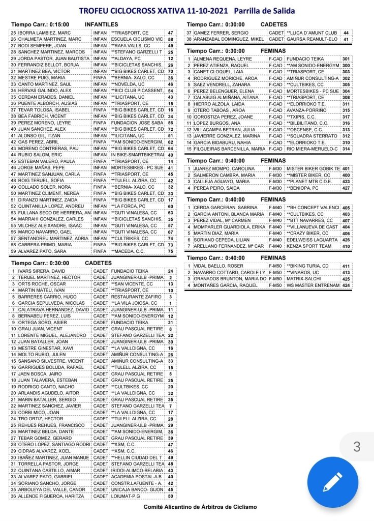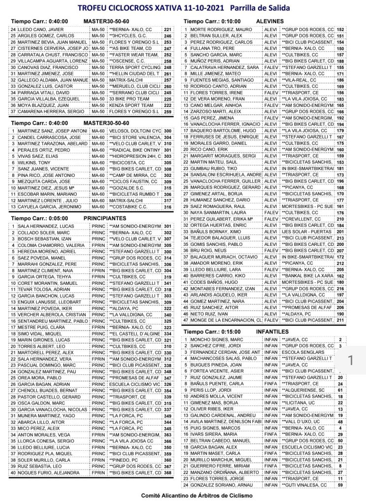 Según informa la FCCV los corredores Elite, Sub23 y Junior deberán recoger un dorsal nuevo junto con el chip en la oficina permanente “no vale el de la Challenge de la C.V.”. Para las categorías de Cadetes y Masters los corredores deberán pasar por la oficina permanente a recoger el chip y el dorsal será el mismo que en la Challenge, para estas categorías el chip que va incluido en el dorsal no será válido para esta prueba, a la recogida del chip el participante deberá dejar 10 euros de fianza o el DNI, ambas cosas será devolverán al devolver el chip.