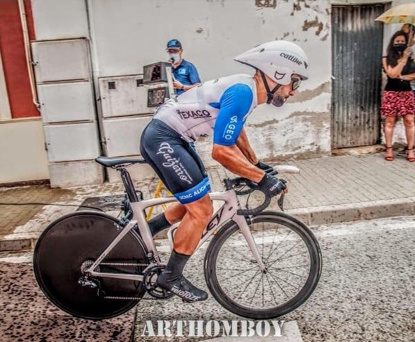 Me inicié en el ciclismo a través de mi padre, apasionado de los deportes y especialmente de éste. Tras haber practicado natación de pequeño y deportes de pelota en extraescolares, fue a la edad de 12 años cuando empecé a salir con la grupeta local de la que mi padre formaba parte. No fue hasta los 15 años, en cadetes de segundo, cuando me inicié en la competición bajo los colores del Club de Atletismo Santa Pola, sección ciclista. Acudía a las carreras en solitario acompañado siempre de mi padre. Los dos años siguientes en juveniles los pasé en el equipo Esetec-Inverse y Esetec-Crocs dirigido por Jesús Buendía, buen ciclista, gran director y mejor persona. Con él aprendimos muchísimo ciclismo los que tuvimos la suerte de correr en aquel bloque. En sub 23, tras hacer la pretemporada con el Ciclismoelx, la falta de un proyecto sólido, mi salida al mundo laboral y unos problemas físicos que arrastraba de la anterior temporada acabaron por bajarme de la bicicleta durante unos años en los que sólo monté de forma ocasional. Fue en 2017 cuando retomé los entrenamientos y la vida ciclista con el objetivo de volver a las competiciones en los años siguientes pero por motivos laborales, personales y la pandemia no pude regresar hasta este 2021 en las filas de la UCMC Alicante compitiendo con ellos en la Comunidad Valenciana y Murcia cuando me era posible, y en Madrid el resto del tiempo. En cuanto a palmarés es poco extenso, en mis años de juvenil mis logros más destacados fue un bronce en el Autonómico de pista y algún metal más en pista en competiciones menores. Hice varios top 10 en CRI y carreras de la zona y buenas actuaciones pero poco más. Este año he hecho varios top 10 en mi categoría y mi mayor logro ha sido un tercer puesto en la CRI de San Martín De la Vega, en la categoría elite.