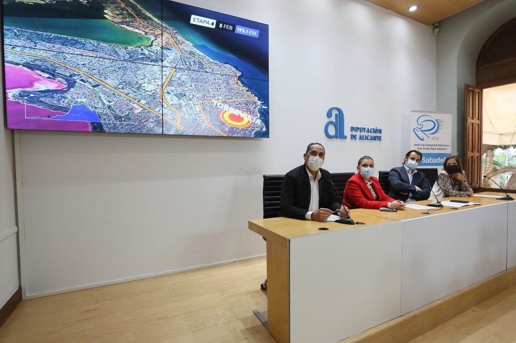 El presidente de la institución provincial, Carlos Mazón, y el diputado de Deportes, Eduardo Dolón, han participado esta mañana en la presentación de esta prueba, considerada como una de las más relevantes del país, que en su 73ª edición contará con la presencia de 23 equipos de todo el mundo -quince World Tour y ocho Pro Continentales-. «El compromiso de la Diputación de Alicante con esta iniciativa es absoluto ya que, además de favorecer la reactivación de nuestros municipios, nos permite difundir nuestra singular orografía y riqueza paisajística”, ha señalado el diputado y alcalde de Torrevieja, quien ha añadido que la institución ha incrementado hasta los 140.000 euros la aportación a este evento “conscientes de su gran impacto económico, ya que sólo con las dos noches que pernoctará en la provincia la ‘caravana de la Volta’, compuesta por cerca de mil personas, se multiplica por dos la inversión realizada”.