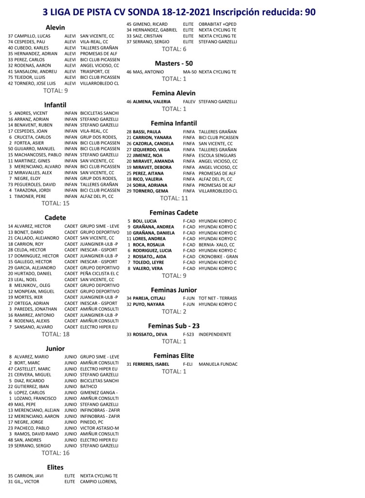 El velódromo de Onda acoge el sábado, día 18 de diciembre, la tercera prueba de la Liga de Pista de la Comunitat Valenciana. Serán 90 los pistards los que participen a partir de las nueve de la mañana. No cabe duda que la concentración de la Selección Española júnior de Galapagar ha reducido un poco el número de inscritos.