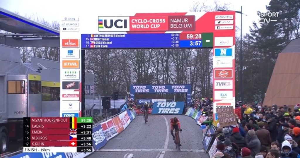 Michael Vanthourenhout logró al fin su primer triunfo en una Copa del Mundo en suelo belga. El ciclista del Pauwels se ha impuesto en Namur a Tom Pidcock, que ha finalizado segundo tras sufrir una caída que le dejó sin el triunfo final. Por su parte, Toon Aerts completó el podio. Eli Iserbyt (5º) mantiene el maillot de líder del campeonato a pesar de terminar en quinta posición. Felipe Orts (Burgos BH) finalizó en el puesto 18.
