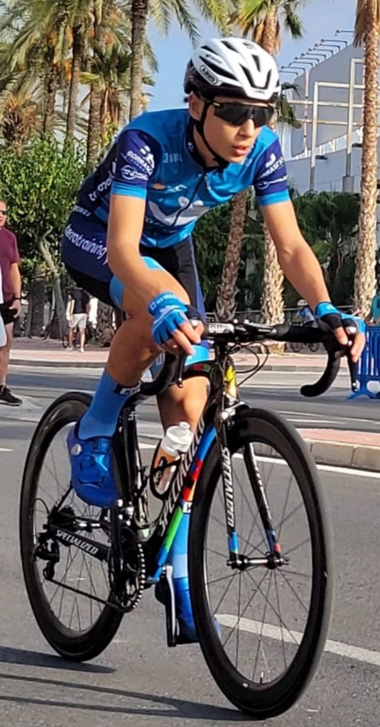 Me inicié a los siete años por mediación de mi padre y mi tío Francisco Pérez que lleva toda la vida vinculado a este deporte. Mi primer equipo fue el Galgos del Sol, pero durante cinco campañas mi color ha sido el azul de Valverde Team. En mi etapa en escuelas he sido subcampeón y campeón regional en todas las categorías que he corrido, obteniendo triunfos en todas ellas.